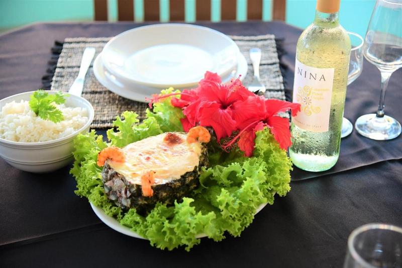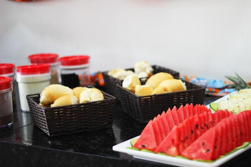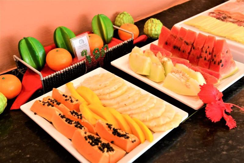 Usted puede disfrutar de un desayuno bufé, que incluye fruta fresca y de importación, así como una variedad de panes. El albergue cuenta con el restaurante Tropicana, que ofrece el almuerzo y la cena, y ofrece platos con pescados y mariscos frescos.