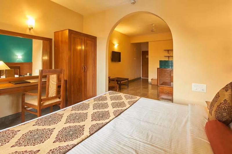 Este impresionante hotel se encuentra en el tranquilo pueblo de Arpora, en Goa del Norte, a solo 1, 5 km de la magnífica playa de Baga. Este encantador hotel es fácilmente accesible para los visitantes, ya que el aeropuerto está a solo 50 km de distancia. Este hotel en la ladera ofrece 135 habitaciones bellamente decoradas, todas completamente equipadas con comodidades modernas que incluyen televisión por satélite, aire acondicionado y nevera. Todas las habitaciones también cuentan con balcones privados, que ofrecen vistas espectaculares de los alrededores. Durante su estancia, los huéspedes pueden disfrutar de las excepcionales instalaciones del hotel, que incluyen 2 piscinas, un gimnasio y un salón de belleza. A la hora de comer, los huéspedes tendrán mucho donde elegir, con una variedad de restaurantes en las instalaciones que sirven deliciosos platos y ofrecen un espacio para relajarse y socializar. Ya sea que viajes solo, en grupo o en familia, este es el destino perfecto.