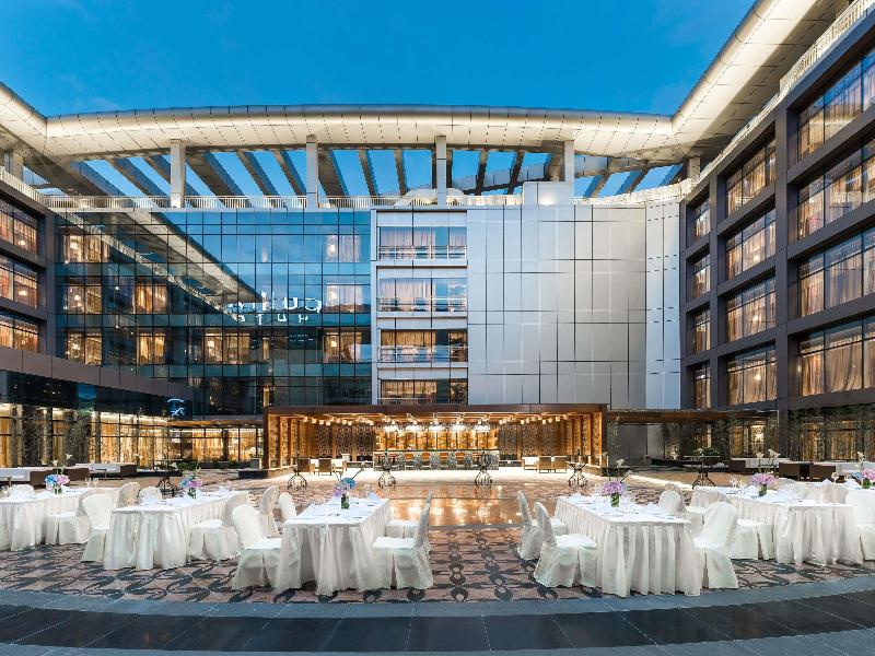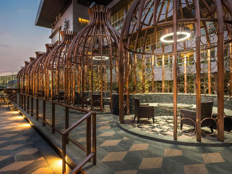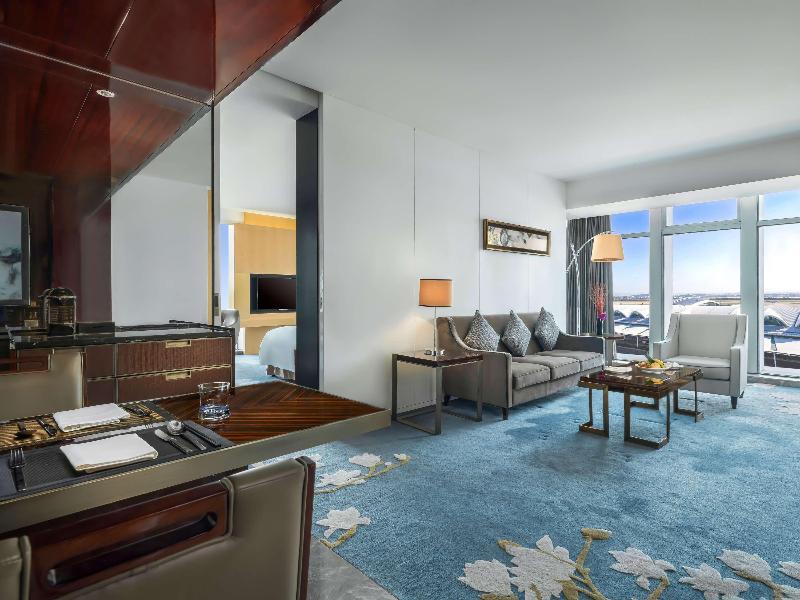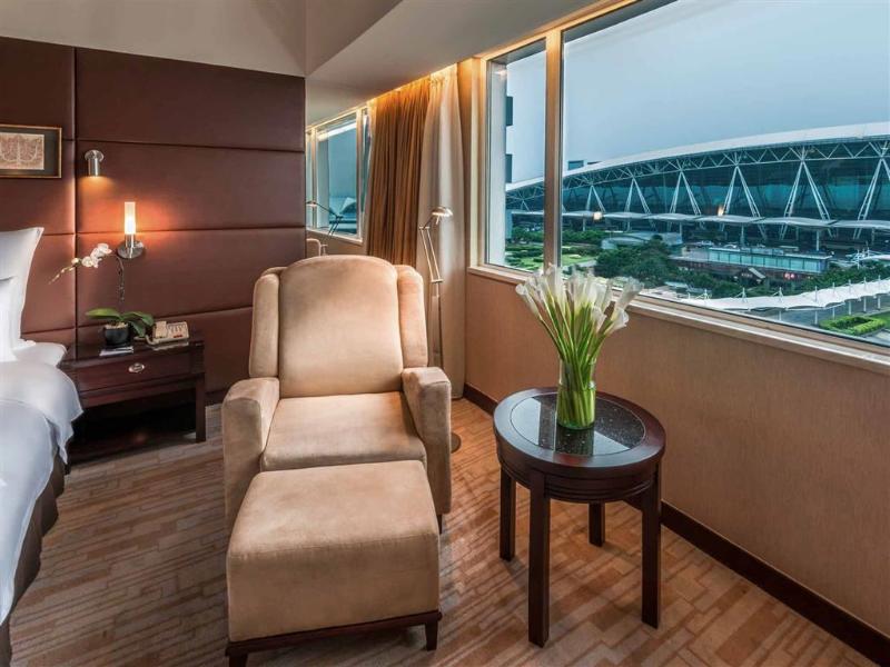Situado dentro del Aeropuerto Internacional de Guangzhou Baiyun, este hotel de 5 estrellas ofrece acceso directo a los viajeros, ubicado frente a la Puerta 12 de la Terminal 1 y a poca distancia a pie de la Terminal 2. El hotel ofrece un servicio gratuito de transporte al aeropuerto, y para ir a la ciudad, la estación de metro Airport South está a 10 minutos a pie, con un trayecto de 30 minutos hasta el centro. Las instalaciones incluyen una piscina al aire libre, un gimnasio y servicios de spa con sauna. Las opciones gastronómicas constan de dos restaurantes y un bar, con un restaurante que sirve cocina internacional para el almuerzo y la cena. Las 578 modernas habitaciones del hotel están equipadas con aire acondicionado y wifi gratuito, y algunas ofrecen vistas al patio.