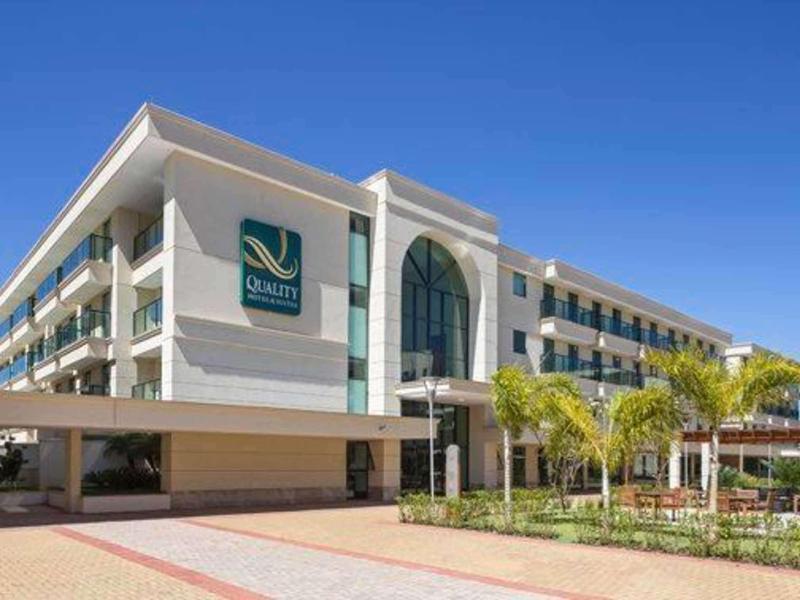 El Quality Hotel & Suites Brasilia ofrece una refrescante piscina, una espaciosa área al aire libre, un gimnasio bien equipado y wifi gratuito. Ubicado a solo 200 metros de la estación de autobuses urbanos de Guará, este hotel proporciona un cómodo acceso al transporte local. Las habitaciones cuentan con TV de pantalla plana por cable, aire acondicionado y minibar. Los baños privados incluyen duchas y secadores de pelo, y a tu llegada te recibiremos con una bebida de cortesía. El desayuno buffet diario ofrece una variedad de frutas frescas de temporada, panes y embutidos. En el restaurante del hotel podrás disfrutar de especialidades regionales e internacionales, junto con una selección de bebidas. Los servicios adicionales incluyen sauna, cancha de squash, centro de convenciones, cafetería y servicio de lavandería. El hotel está convenientemente ubicado a 8 km del Aeropuerto Internacional Juscelino Kubitschek, a 12 km del Estadio Mané Garrincha y a 16 km del Congreso Nacional.