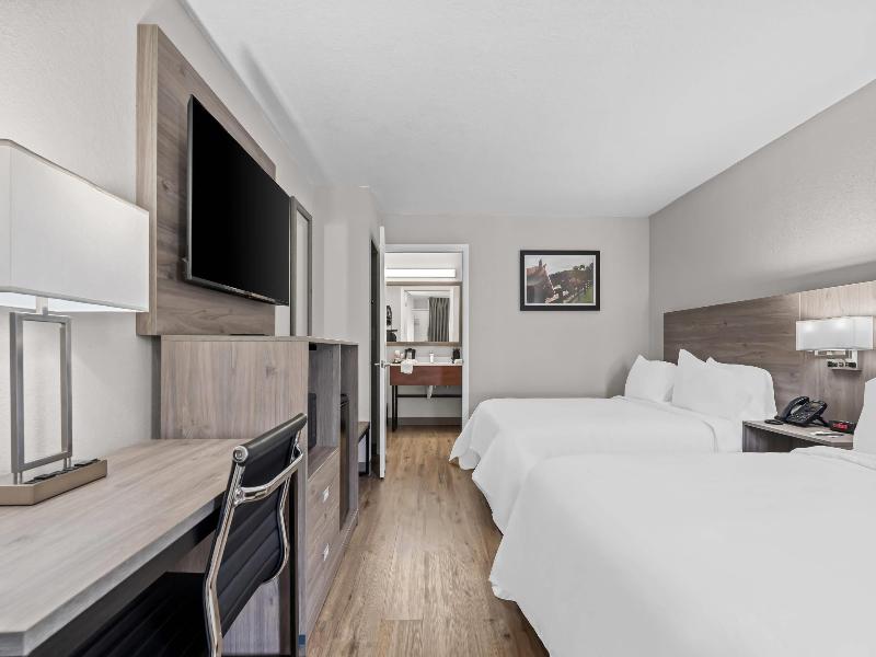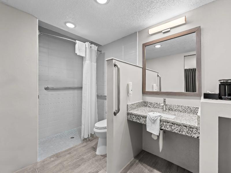 El hotel Quality Inn and Suites I-75 te ofrece el lugar ideal para alojarte sin gastar una fortuna en Ocala, FL. Estamos convenientemente ubicados junto al UF Health Hospital y a solo un paso del hermoso Silver Springs State Park, la primera atracción turística de Florida. Nuestro hotel ofrece cómodas habitaciones y suites selectas, un amable personal disponible las 24 horas y una variedad de servicios para que tu estancia sea memorable. Comienza tu día con un desayuno caliente de cortesía, conéctate con nuestro wifi gratuito y date un chapuzón en nuestra piscina después de un día de turismo. También ofrecemos amplias salas de reuniones para tus necesidades de negocios y un gimnasio bien equipado para tu rutina de ejercicios. Tus mascotas son bienvenidas gracias a nuestra política de admisión de mascotas. Reserva hoy mismo y disfruta de una excelente relación calidad-precio en Ocala.
