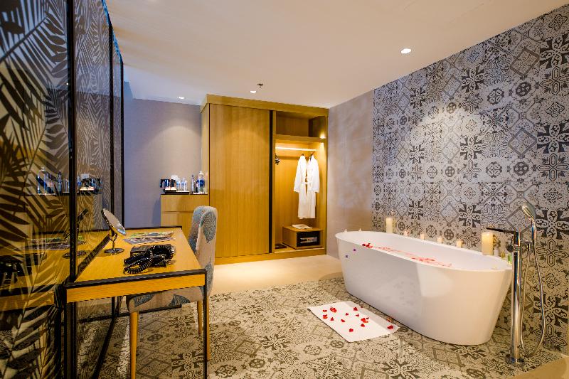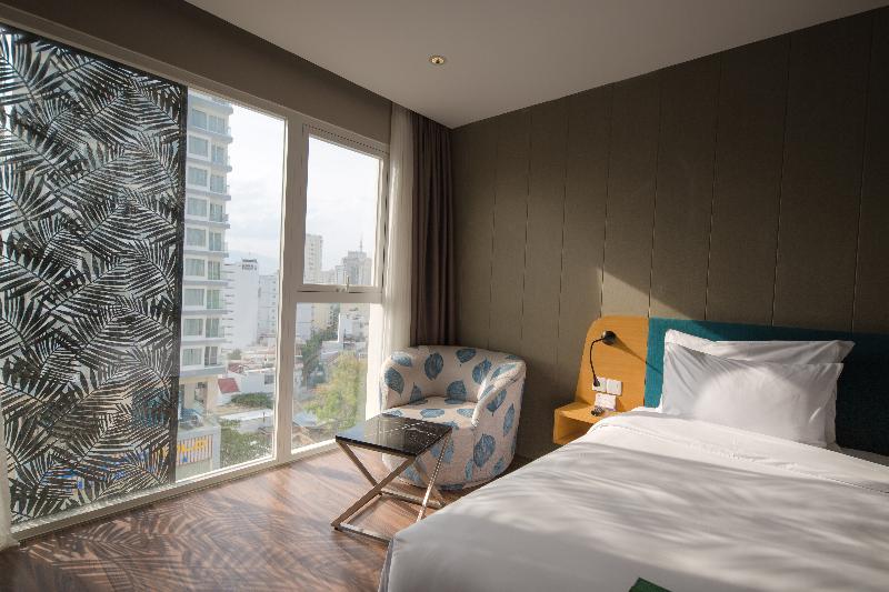 El Quinter Central Hotel, ubicado en la calle Tran Phu, ofrece 170 lujosas y modernas habitaciones en seis categorías, desde Superior hasta la opulenta Quinter Suite. Cada habitación, con una superficie de 43 a 80 metros cuadrados, cuenta con un balcón con vistas a la ciudad o al mar. El hotel presume de tener los dos salones de bodas más grandes de Nha Trang, cada uno con capacidad para más de 1000 invitados, y cuatro salas de conferencias bien equipadas. Entre las comodidades adicionales se incluyen un restaurante que ofrece buffet y servicio a la carta, un bar en la piscina, una piscina infinita, karaoke y un baño de hierbas medicinales.