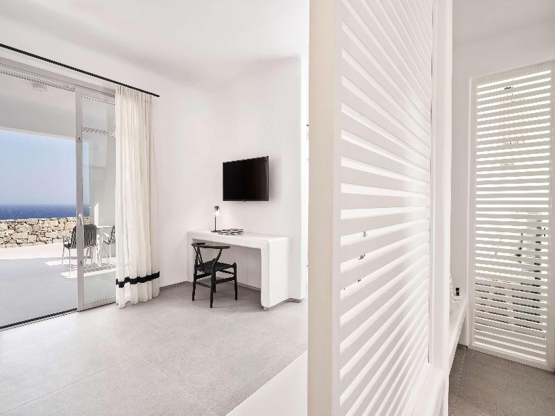 Elevado sobre la famosa playa de Kalo Livadi, el nuevo Radisson Blu Euphoria Resort de 5 estrellas captura la esencia del encanto y el lujo cicládicos. Aquí, el diseño elegante se combina armoniosamente con las impresionantes vistas al mar de 180 grados, que inspiran relajación y romance. Saborea los sabores de Mykonos en nuestros restaurantes y bares, que ofrecen cocina local fresca. Relájate junto a la piscina, nada bajo el sol del Egeo y recarga energías en nuestro gimnasio y spa. Cada una de las 34 habitaciones y suites ofrece acabados refinados y elegantes toques cicládicos, y 31 de ellas cuentan con jacuzzis o piscinas privadas. Para mayor comodidad, el resort ofrece una estación de carga para coches eléctricos y un servicio de registro de salida exprés.