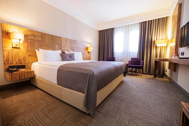 Experimenta la elegancia y la comodidad en el recién renovado Ramada Cappadocia. Ubicado en el corazón de Capadocia, Anatolia Oriental, el hotel ofrece impresionantes vistas del Monte Erciyes y los extensos valles. Explora las atracciones cercanas, incluido el Parque Nacional de Göreme, las Chimeneas de las Hadas y un sinnúmero de santuarios históricos, viviendas, pueblos e iglesias en Ürgüp, Göreme y Uçhisar. Cada una de las 211 habitaciones cuenta con lujosas alfombras, paredes recién decoradas, camas y muebles nuevos y televisores LED completamente nuevos. Disfruta de comodidades como minibar completamente surtido, aire acondicionado y calefacción. Comienza tu día con el desayuno bufé gratuito y relájate en la sauna, el baño de vapor y los baños turcos. Mantén tu rutina de ejercicios en la piscina cubierta y el gimnasio, y aprovecha el centro de negocios totalmente equipado. El hotel también ofrece un restaurante bufé con servicio completo y más de 282 metros cuadrados (3035 pies cuadrados) de espacio flexible para reuniones y eventos, con capacidad para 90 personas en banquetes.