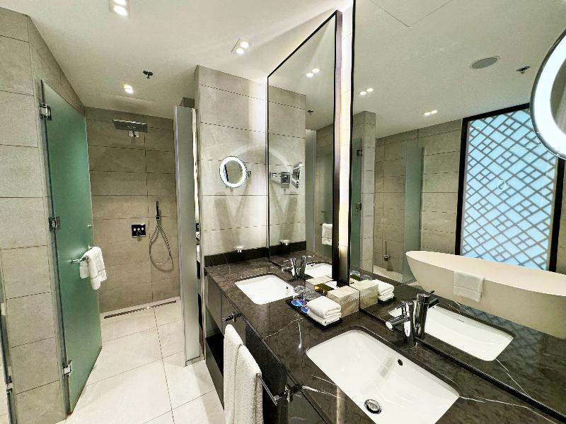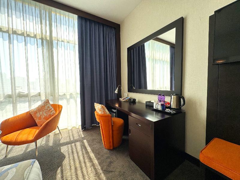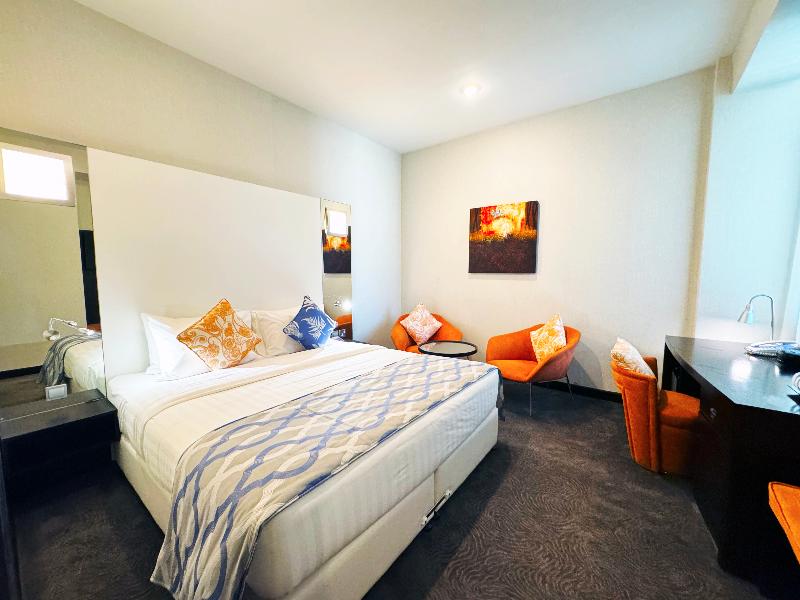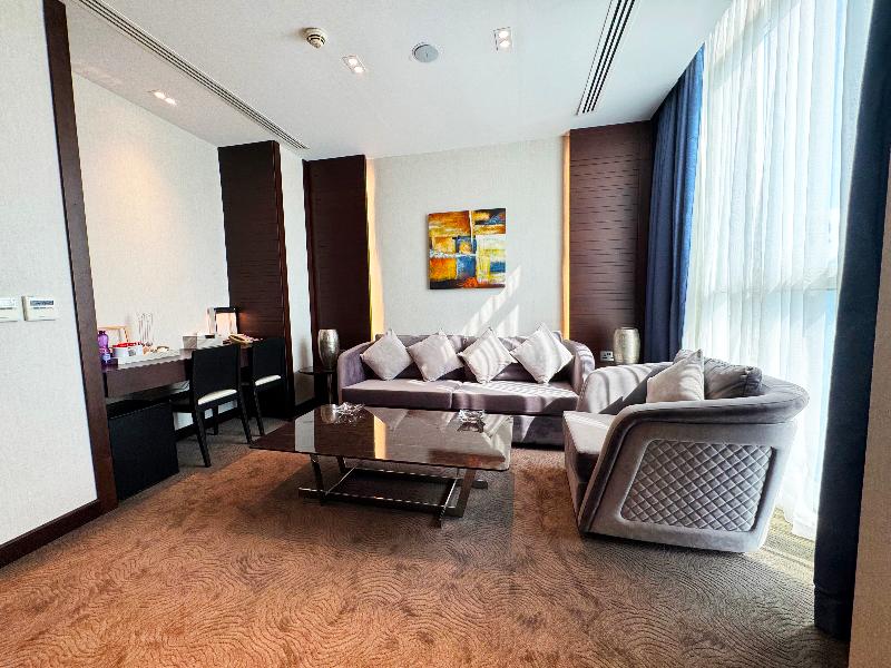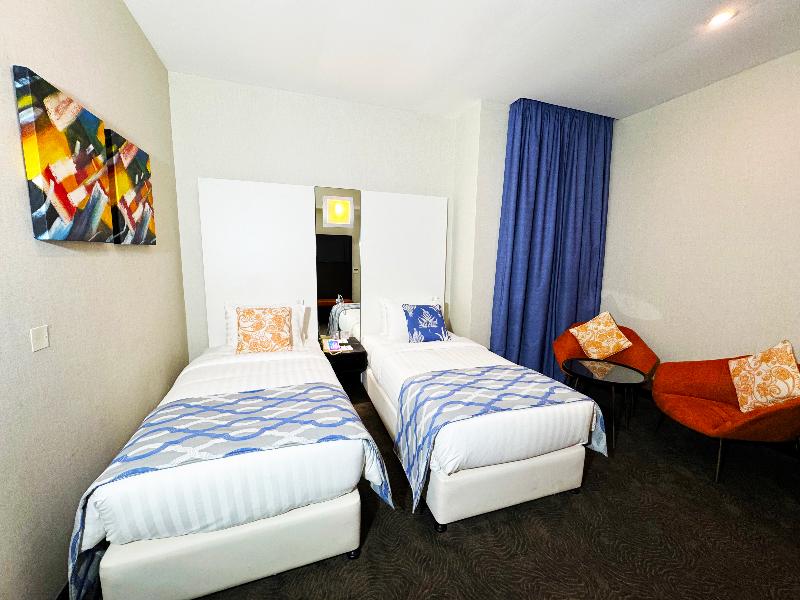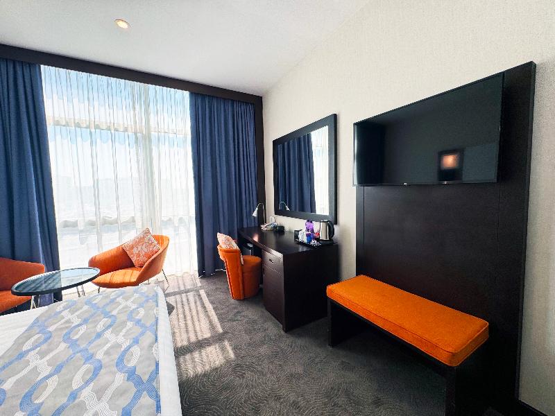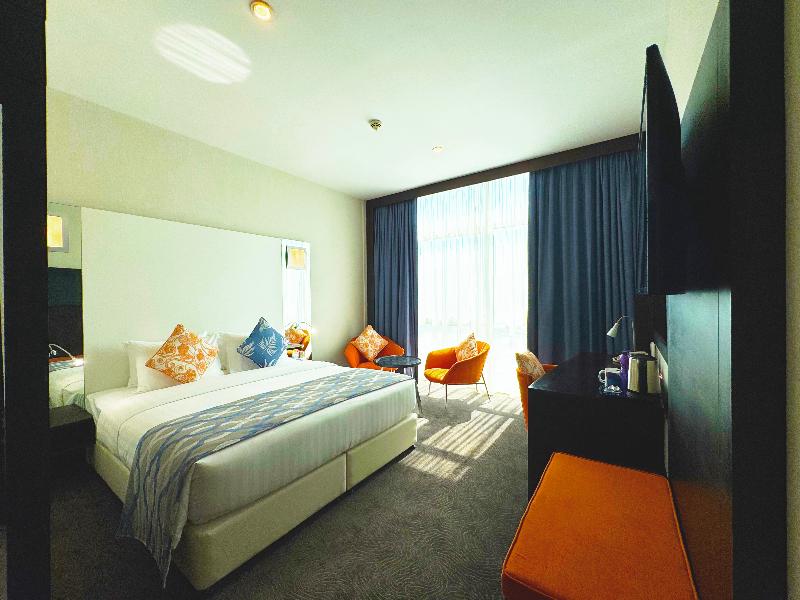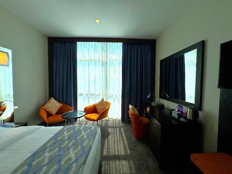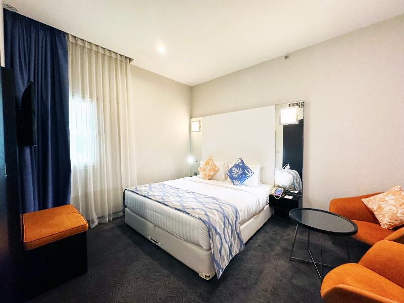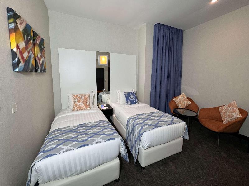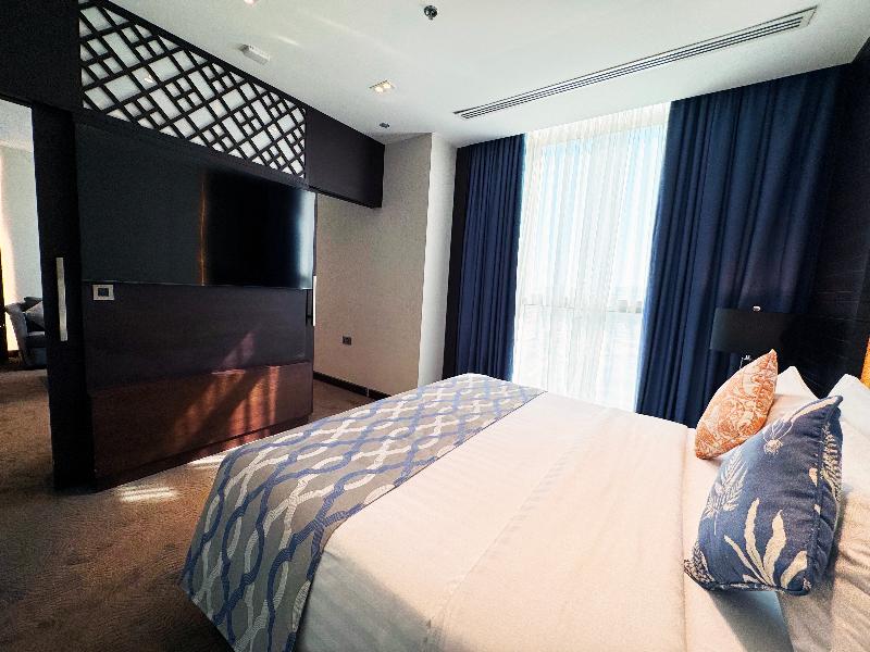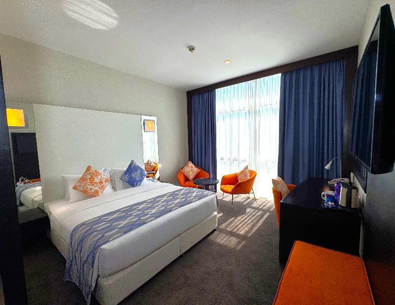 El elegante Ramada Encore, ubicado en la zona de Al Asmakh en Doha, se encuentra a poca distancia a pie de Grand Hamad Street y Bank Street. Nuestro hotel ofrece un cómodo acceso a museos, Souq Waqif, Gold Souq y la Corniche, y está a solo 13 km del Aeropuerto Internacional de Hamad. Como hotel moderno de servicios selectos, el Ramada Encore ofrece un servicio excepcional y tarifas razonables, incluyendo wifi gratuito en todo el establecimiento. La decoración luminosa y elegante del hotel crea un ambiente refrescante para trabajar, descansar, comer y celebrar reuniones. The Hub, nuestro restaurante, ofrece un espacio dinámico para disfrutar de una cocina internacional fresca e innovadora preparada por nuestros creativos chefs. También puedes disfrutar de café y aperitivos en nuestra cafetería mientras te mantienes conectado con el wifi gratuito. The Hub se compromete a utilizar ingredientes de calidad para crear platos clásicos con un toque innovador. Para reuniones y conferencias, nuestro hotel cuenta con dos salas flexibles y de alta tecnología con una capacidad combinada de hasta 20 personas. Nuestros organizadores de eventos profesionales pueden ayudarte con el catering y el transporte. Las habitaciones incluyen servicio de habitaciones las 24 horas, wifi gratuito, caja fuerte, mininevera y televisor de pantalla plana con canales vía satélite. También puedes disfrutar de nuestra piscina cubierta y gimnasio. Disponemos de coche de cortesía y servicio de lavandería por una tarifa nominal.