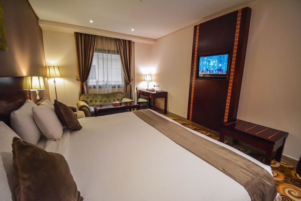 Ubicado en Al Aziziyah, Reef Global Hotel es el punto de partida perfecto para recorrer La Meca. El establecimiento ofrece todas las comodidades y servicios que necesitas para pasar una noche de descanso. El personal de Reef Global Hotel está especialmente preparado para acoger a los huéspedes y orientarlos. Diseñadas para el confort, algunas de las habitaciones ofrecen televisión de pantalla plana, moqueta, perchero, té de cortesía, sábanas para asegurar una estancia completa. Este establecimiento tiene una oferta de entretenimiento muy variada. Personal amable, excelentes instalaciones y proximidad con todo lo que La Meca tiene para ofrecer son importantes razones para alojarte en Reef Global Hotel.