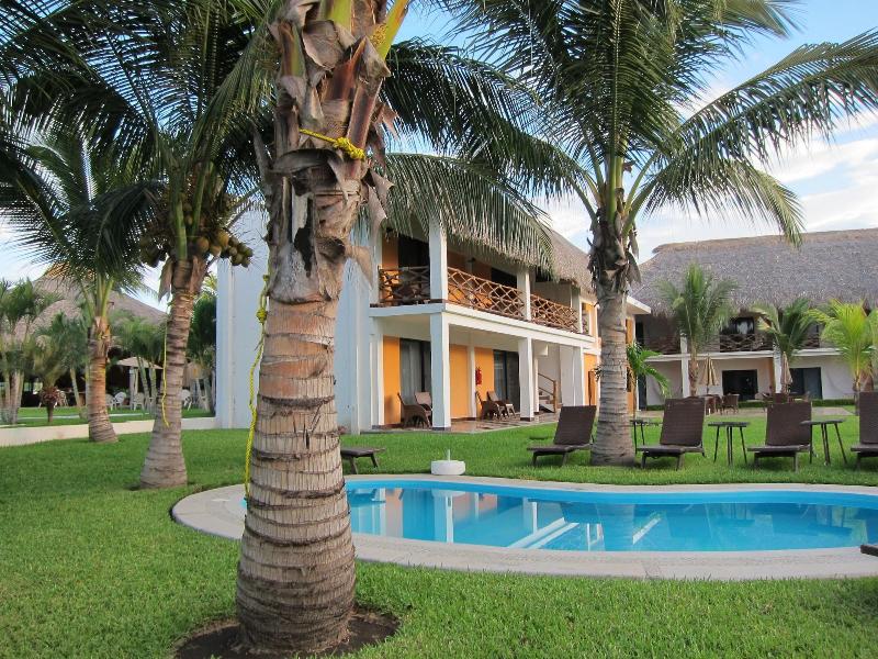 Alójate en Refugio del Sol en Pijijiapan y estarás a 6 minutos a pie de la Reserva de la Biosfera La Encrucijada. Aprovecha las opciones de recreación, como una piscina al aire libre, o disfruta de la vista desde la terraza y el jardín. Este hotel también ofrece acceso a internet inalámbrico gratuito, servicios de conserjería y un área de pícnic. La recepción tiene un horario limitado. Hay estacionamiento sin valet parking gratuito disponible en las instalaciones. Disfruta de una comida en el restaurante o quédate en tu habitación y aprovecha el servicio a la habitación del hotel (con horario limitado). Sacia tu sed con tu bebida favorita en el bar o lounge. Se sirve desayuno buffet todos los días de 8:00 a. m. al mediodía por una tarifa. Alójate en una de las 15 habitaciones con televisión de pantalla plana. Las habitaciones disponen de balcón o patio privado. El acceso inalámbrico a internet gratuito te mantiene conectado y la programación por satélite provee entretenimiento. Los baños privados con ducha disponen de artículos de tocador gratuitos y secadora de pelo.