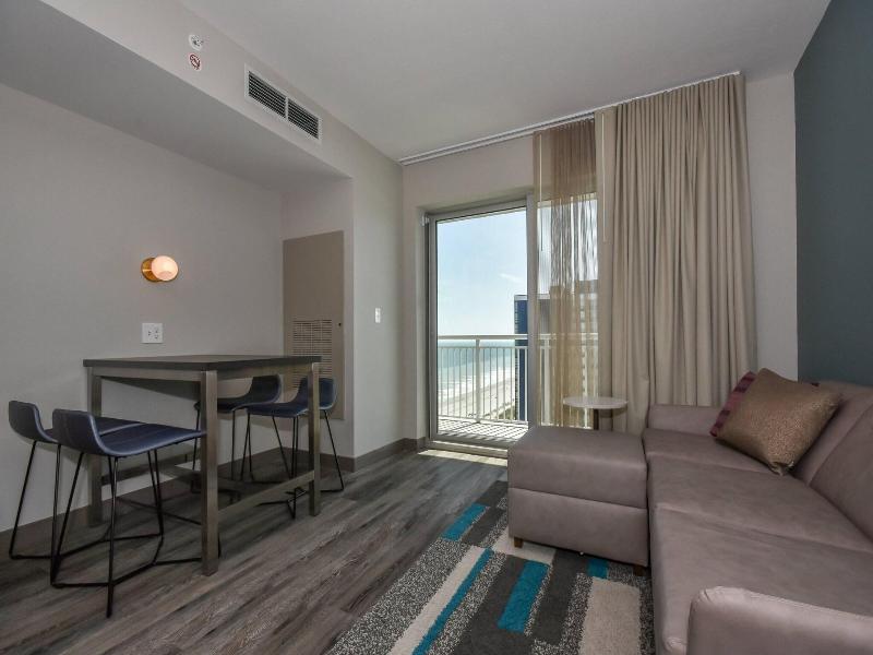 Alójate frente al mar en el Residence Inn by Marriott Myrtle Beach Oceanfront y disfruta de fácil acceso al paseo marítimo de Myrtle Beach y a las playas, todo a 5 minutos en coche. Este hotel de estilo art déco ofrece una piscina al aire libre, un gimnasio abierto las 24 horas y wifi gratuito. Cada una de las 191 habitaciones cuenta con una cocina con frigorífico grande, congelador y horno, además de un balcón privado y un televisor LCD de 32 pulgadas. Disfruta de un desayuno bufé gratuito a diario o de una comida deliciosa en el restaurante y bar del hotel. Los servicios adicionales incluyen un centro de negocios, periódicos gratuitos y servicio de tintorería/lavandería. El hotel está convenientemente ubicado cerca de atracciones populares como la noria SkyWheel Myrtle Beach (4, 7 km) y el centro comercial y de entretenimiento Broadway at the Beach (7, 9 km).