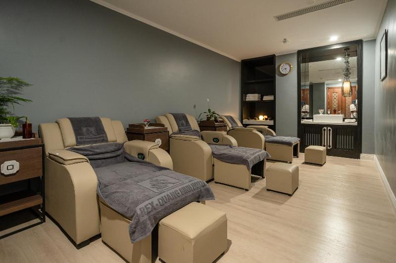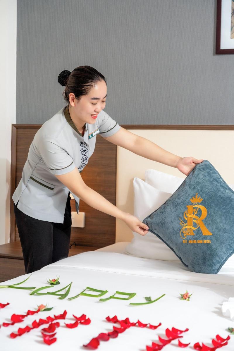 El Rex Quang Binh Hotel cuenta con gimnasio, jardín, salón compartido y terraza en Dong Hoi. Todas las habitaciones de este hotel de 4 estrellas ofrecen vistas a la ciudad, y los huéspedes pueden disfrutar de acceso a un restaurante y a un bar. El alojamiento dispone de recepción 24 horas, servicio de enlace con el aeropuerto, servicio de habitaciones y wifi gratuita en todas las instalaciones. El hotel ofrece habitaciones con aire acondicionado, escritorio, hervidor de agua, nevera, caja fuerte, TV de pantalla plana y baño privado con ducha. Las habitaciones del Rex Quang Binh Hotel incluyen ropa de cama y toallas. Todas las mañanas se sirve un desayuno a la carta. El Rex Quang Binh Hotel, de 4 estrellas, cuenta con piscina cubierta. El aeropuerto más cercano es el de Dong Hoi, ubicado a 6 km del hotel.