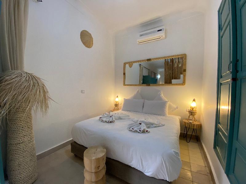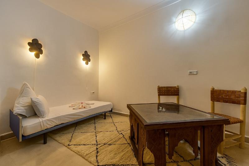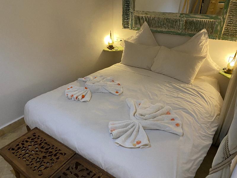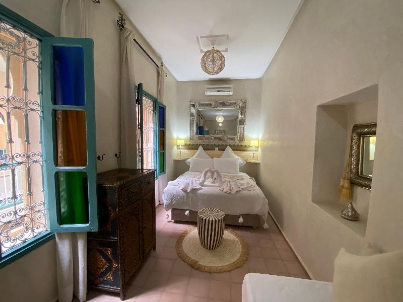 Enclavado al final de un tranquilo callejón, cerca de los zocos y la Madrasa de Ben Youssef, el Riad 7 Saints se encuentra a solo unos minutos a pie de la famosa plaza Jemaa El Fna, la Koutoubia, el famoso minarete del siglo XI, y los zocos. Te da una cálida bienvenida para que experimentes la tranquilidad de su patio, lejos del bullicio y la atmósfera animada de la Medina. Nuestro objetivo es hacer del Riad 7 Saints un oasis de serenidad y frescura, para disfrutar con alegría después de un día frenético en la ciudad roja y sus alrededores. Completamente renovado por su propietaria, Roukia, respetando la tradición marroquí, el Riad 7 Saints es una antigua casa tradicional con 6 habitaciones decoradas con materiales tradicionales como bejmat para el suelo, tadelakt y zellige para las paredes. Nuestro vecindario, uno de los más auténticos y acogedores de toda la Medina, se puede descubrir desde la terraza de nuestro jardín.