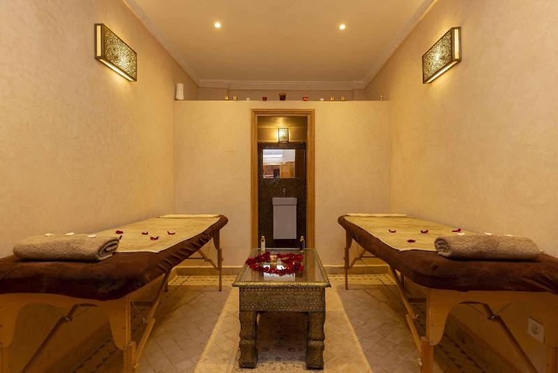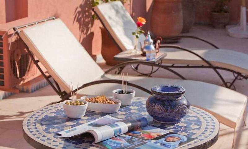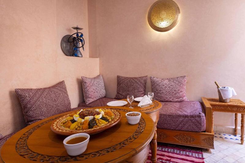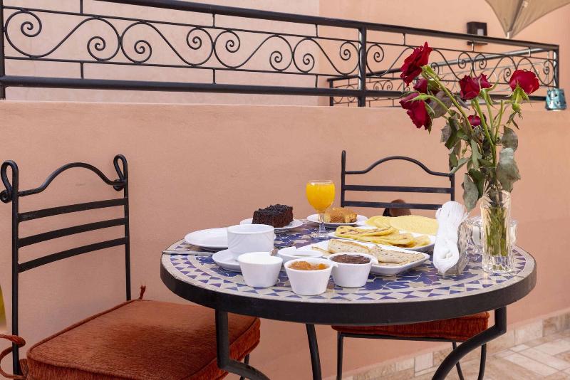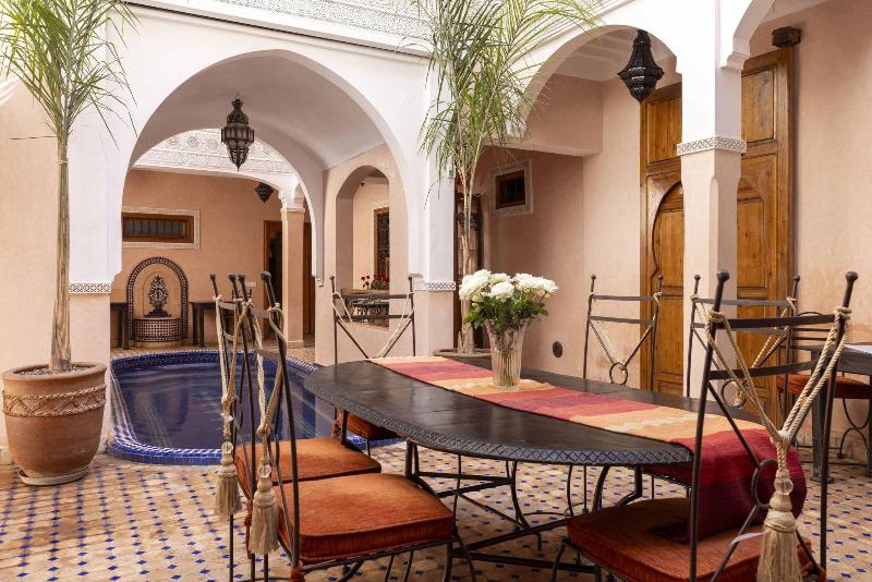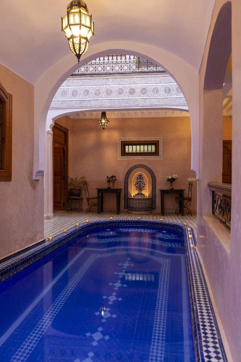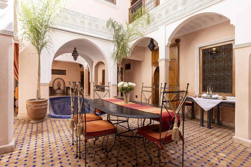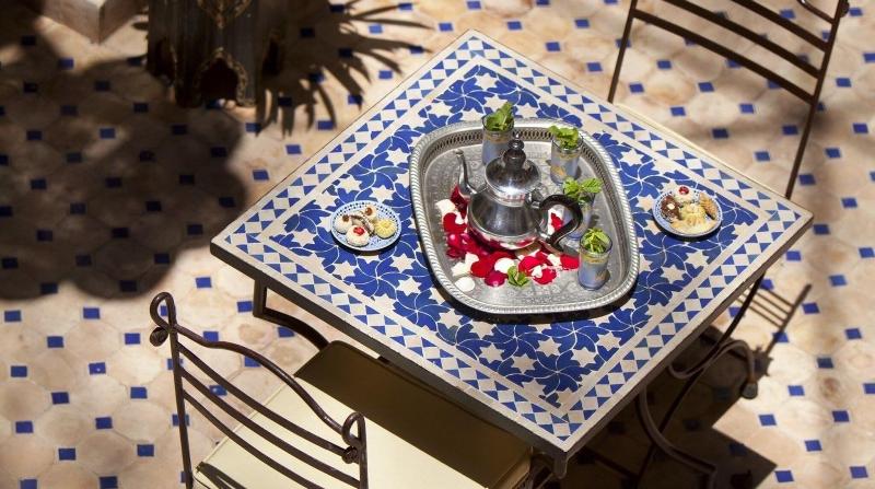 Ubicado en Marrakech, el lujoso Riad Arbre Bleu de 4 estrellas ofrece un restaurante para el disfrute de sus huéspedes. Cada habitación está equipada con secador de pelo, plancha y tabla de planchar, además de facilidades para preparar té y café y acceso a wifi. Se permite fumar en habitaciones designadas y áreas públicas (especificar al reservar). Los huéspedes pueden disfrutar de la piscina cubierta y otras instalaciones de ocio. Los servicios adicionales incluyen transporte al aeropuerto y conserjería. Se admiten mascotas.