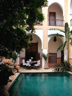 Este histórico hotel, restaurado respetando la arquitectura y los materiales tradicionales, ofrece un alojamiento muy confortable. El hotel cuenta con 7 habitaciones y está dotado de un patio rodeado de galerías y arcos, así como de preciosas terrazas con vistas a la antigua mezquita de la Kutubia y la cordillera del Atlas, desde donde se pueden admirar magníficas puestas de sol con la mágica luz. El establecimiento dispone de vestíbulo con servicio de salida y recepción 24 horas. Sus instalaciones también incluyen caja fuerte, servicio de cambio de divisas, sala de juegos y sala de TV. Además, en el recinto hay una cafetería y un restaurante. También se ofrece conexión a Internet WiFi (de pago), servicio de lavandería (de pago) y aparcamiento y garaje para los huéspedes que lleguen en coche. También se pueden alquilar bicicletas en el hotel.