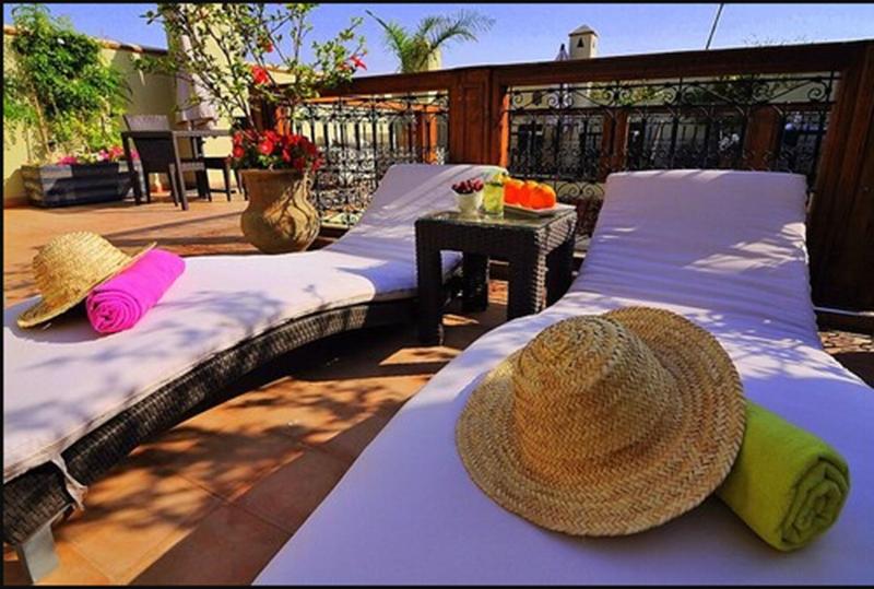 Alójate en Riad Chayma - Adults Only y estarás en pleno corazón de Marrakech, a 15 minutos a pie de Plaza de Marrakech y Le Jardin Secret. Este riad de 4 estrellas se encuentra a 1, 2 km de Museo de Marrakech y a 1, 9 km de Jemaa el-Fnaa. Disfruta de las instalaciones recreativas, que incluyen una piscina al aire libre, o del paisaje desde la terraza en la azotea. Se ofrece además conexión a Internet wifi gratis, servicios de conserjería y una televisión en la zona común. Tendrás un servicio de recepción las 24 horas, atención multilingüe y consigna de equipaje a tu disposición. Se ofrece servicio de transporte al aeropuerto (ida y vuelta) de pago. Si tienes hambre, puedes saciar tu apetito en el restaurante de este riad o aprovechar el servicio de habitaciones con horario limitado. Se sirve un desayuno completo gratuito todos los días de 8:30 a 10:30. Te sentirás como en tu propia casa en cualquiera de las 5 habitaciones con decoraciones diferentes. Disfrutarás de conexión a Internet wifi gratis. El cuarto de baño está provisto de artículos de higiene personal gratuitos y secadores de pelo. Entre las comodidades, se incluyen caja fuerte, agua embotellada gratuita y servicio de limpieza a diario.