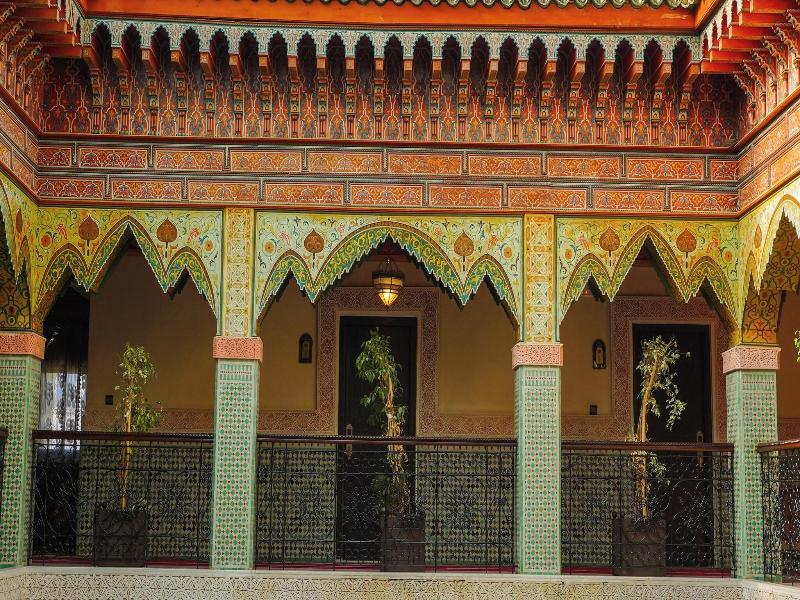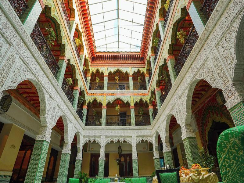 El riad se encuentra en Fez, en el corazón de la medina, y se puede llegar a la ciudad nueva en coche o autobús en unos 5 minutos. También hay varios restaurantes y tiendas alrededor del riad. La playa más cercana está aproximadamente a 3 horas en coche del riad y el Aeropuerto Fez-Sais está a unos 15 km de distancia. Esta encantadora casa de huéspedes es un verdadero palacio, donde puedes disfrutar del lujo y el refinamiento de un gran hotel en un ambiente auténtico e íntimo. Una gama completa de servicios te permite soñar con una estancia memorable en la ciudad espiritual del mundo, con un equipo dedicado listo para satisfacer todos tus deseos. El riad, con aire acondicionado, ofrece un total de 24 habitaciones y te da la bienvenida en un vestíbulo con recepción 24 horas y servicio de salida, caja fuerte, servicio de cambio de divisas, guardarropa, ascensor a las plantas superiores y un quiosco de periódicos. Otras instalaciones disponibles para los huéspedes en este hotel urbano, ideal para familias, incluyen una peluquería, sala de televisión, cafetería, bar y restaurante. También puedes aprovechar el acceso inalámbrico a Internet, el servicio de habitaciones y de lavandería (ambos con cargo), un aparcamiento y garaje, y un servicio de alquiler de bicicletas (con cargo). Algunas de las suites del riad se abren al tranquilo patio, otras te permiten observar a los comerciantes de la medina en su día a día, mientras que el resto tienen vistas a la mezquita más antigua de la ciudad espiritual. Cada habitación cuenta con ducha, cama doble o extragrande, zona de cocina con minibar, microondas y menaje para preparar té y café, además de aire acondicionado y calefacción regulables individualmente. Otras comodidades de las habitaciones incluyen teléfono de línea directa, TV vía satélite, acceso a Internet y caja fuerte. Puedes relajarte en la terraza tomando el sol en las tumbonas y bajo las sombrillas.