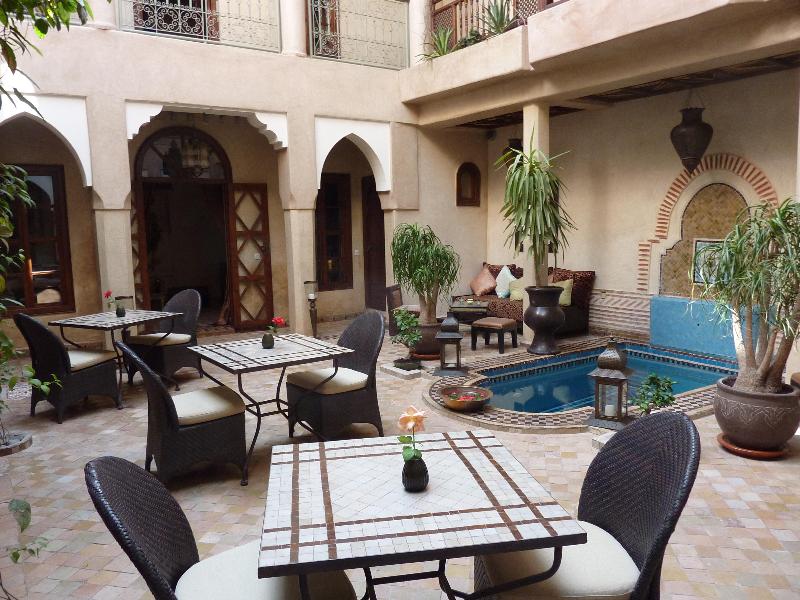 Este precioso hotel de Marrakech consta de 5 lujosas habitaciones y suites de decoración exquisita. Cuenta con una terraza en la azotea con zona para tomar el sol, salón y comedor, así como con un precioso patio con azulejos de zellij y un estanque y una fuente tradicionales. Es un emplazamiento ideal para una cena romántica a la luz de las velas mientras se disfruta de la deliciosa cocina marroquí. Otras instalaciones incluidas en este establecimiento climatizado son recepción 24 horas, comedor, conexión a Internet y aparcamiento. Se ofrece servicio de traslado al aeropuerto, previa reserva (de pago).