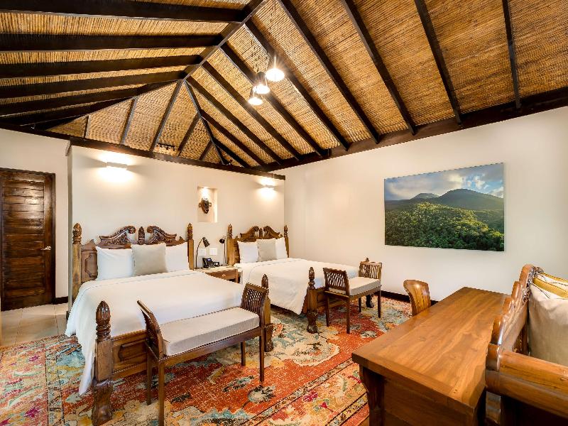 Este encantador eco hotel se encuentra a 100 km al norte de San José, entre las provincias de Guanacaste y Alajuela. El complejo de bungalows está situado entre las localidades de Fortuna y Upala, aproximadamente a 25 km de Fortuna y del Volcán Arenal. Río Celeste, Parque Nacional Tenorio, está a tan solo 100 m del hotel, y el Aeropuerto Internacional Daniel Oduber en Liberia, Guanacaste, se encuentra a unos 72 km. Esta joya escondida se ubica en las afueras del Parque Nacional Volcán Tenorio y es un oasis de tranquilidad que ofrece una experiencia natural única. Rodeado de exuberante selva tropical, cada una de sus 26 espaciosas casitas brinda un refugio exclusivo donde los huéspedes pueden relajarse en medio de la impresionante selva. Construido en 2010, el complejo spa con aire acondicionado recibe a sus huéspedes en un vestíbulo con recepción 24 horas y servicio de salida, caja fuerte, servicio de cambio de divisas, guardarropa y ascensor. Otras instalaciones incluyen sala de televisión, cafetería, bar y restaurante. Los huéspedes también pueden disfrutar de acceso a internet wifi, servicio de habitaciones y lavandería, y aparcamiento. Las habitaciones cuentan con camas tamaño king o dos camas tamaño queen, equipadas con ropa de cama de lujo y un colchón de primera calidad, así como un patio trasero privado con ducha al aire libre y amplias puertas de cristal que dan al balcón delantero privado. Cada habitación está equipada con comodidades premium, como bañera de hidromasaje, TV de plasma vía satélite, reproductor de DVD/CD, base para iPod, acceso a internet, caja fuerte para portátiles y aire acondicionado. Cada habitación también dispone de baño privado con ducha, bañera, secador de pelo y agua caliente, minibar completo, set de té y café y teléfono de línea directa. Hay dos habitaciones adaptadas para personas con movilidad reducida.