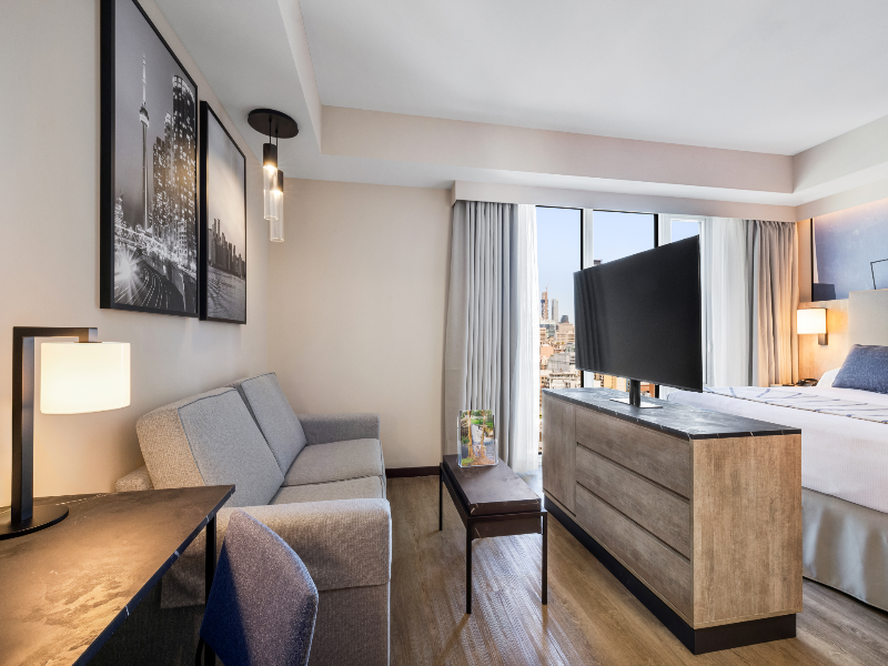 El hotel cuenta con 352 dormitorios. Los viajeros podrán conectarse al Wi-Fi en los espacios públicos. La recepción está abierta todo el día. Los espacios comunes de Riu Plaza Toronto son accesibles.