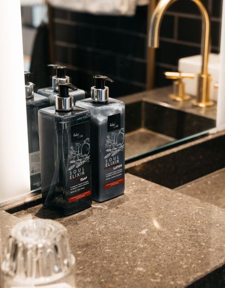 En el interior, todas las habitaciones cuentan con nuestros toques Lean Luxury, que incluyen una cama grande y cómoda, productos de aromaterapia Ruby Care y toallas suaves y esponjosas, junto con un amplificador Marshall para agregar algo de energía a su audio.