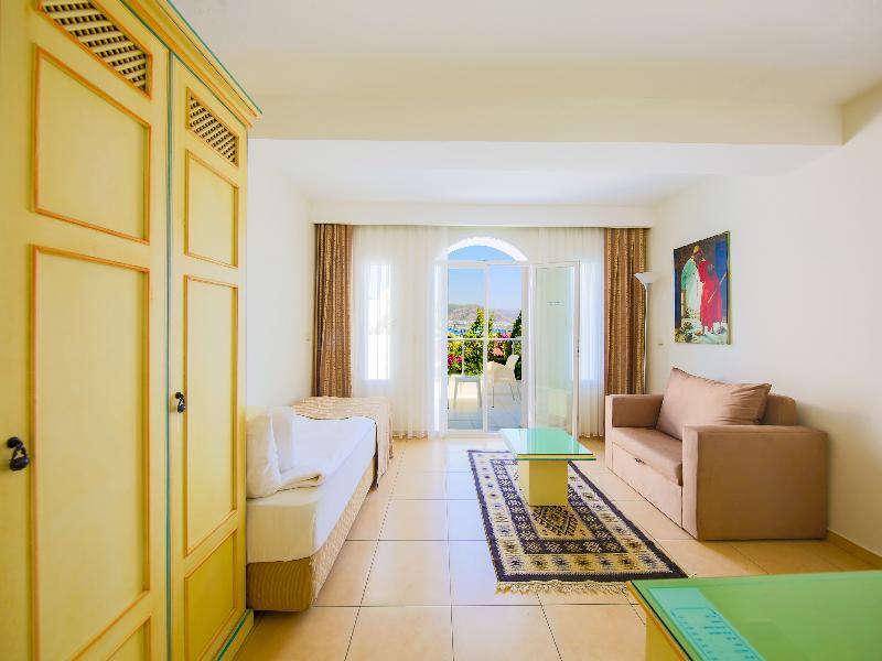 Renovado en 2013, este popular hotel de playa presenta el típico estilo de Bodrum, de poca altura y encalado, y consta de 212 habitaciones distribuidas en 6 edificios con vistas a la bahía de Bardakci. Construido en una colina inclinada, el hotel se extiende en terrazas que descienden hasta la playa de arena y la zona de césped para tomar el sol. El cosmopolita complejo turístico de Bodrum está a menos de 30 minutos a pie, y para llegar al majestuoso castillo de San Pedro, en el otro extremo de la bahía, puedes disfrutar de un paseo por el bonito paseo marítimo, flanqueado por goletas turcas por un lado y tiendas, bares y restaurantes por el otro. Hay transporte público junto al hotel.