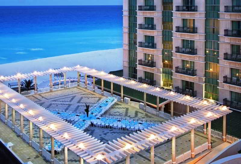 Está estratégicamente situado sobre una de las playas más bonitas de Cancún. Próximo a los centros comerciales más importantes y a los centros nocturnos de la Zona Hotelera.Ofrece restaurante buffet internacional desayuno y almuerzo, restaurante de cocina moderna, restaurante japonés con plancha Teppanyaki, snack bar con servicio de cena a la carta y 3 bares. Dispone de salones de convenciones, 3 piscinas infinitas (1 con hidroterapia), 2 canchas de tenis, centro de deportes acuáticos, un amplio gimnasio (mayores de 18 años). Con cargo: completo Spa con 14 cabinas para masajes, tratamientos faciales y corporales (mayores de 18 años) y salón de belleza. Programa diario de actividades. ¡TODO INCLUIDO!: Todas las comidas y snacks; bebidas nacionales e internacionales; servicio de habitaciones; tenis (raquetas y pelotas incluidas); deportes sin motor. (Más información a la llegada).