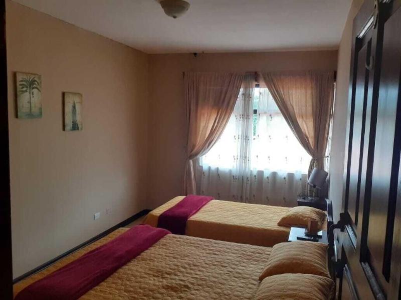Un hotel familiar ubicado en Alajuela, esta propiedad ofrece una base conveniente a solo cinco minutos del Aeropuerto Internacional Juan Santamaría. Puedes relajarte en el jardín o en la terraza y utilizar servicios como la cocina compartida. El hotel ofrece wifi gratis, aparcamiento en las instalaciones y un servicio de traslado gratuito de ida al aeropuerto por las mañanas. Las opciones de alojamiento incluyen habitaciones individuales, dobles, triples, cuádruples y familiares, todas equipadas con aire acondicionado. El desayuno está incluido en la estancia. Para excursiones locales, el City Mall está a 6, 4 km y el Estadio Alejandro Morera Soto a 6, 6 km del hotel.