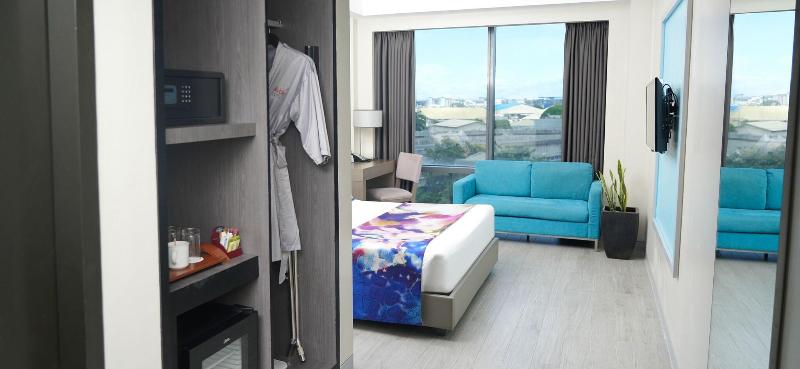 El Savoy Hotel Manila, ubicado en Newport City, Manila, es reconocido como el principal hotel de aeropuerto de Filipinas. Situado a tan solo 350 metros de la Terminal 3 del Aeropuerto Internacional Ninoy Aquino (NAIA), con acceso a través del puente peatonal climatizado Runway Manila, el hotel ofrece un alojamiento moderno ideal tanto para viajeros de negocios como de placer. Puedes disfrutar de servicios como una piscina al aire libre, opciones gastronómicas disponibles durante todo el día, wifi de alta velocidad y habitaciones confortables. La ubicación privilegiada del hotel te brinda fácil acceso a Newport World Resorts, Newport Mall, Villamor Golf Club y una cómoda conexión con el Makati Business District y Bonifacio Global City. Con la cálida hospitalidad filipina, el Savoy Hotel Manila te asegura una estancia sin estrés cerca del aeropuerto de Manila.
