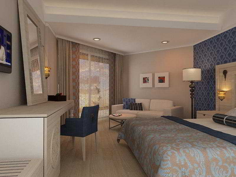 El hotel está situado en una playa larga de arena, en la zona de Evrenseki, a unos 7 km del complejo histórico de Side. Hay paradas de transporte público a un par de minutos a pie de la entrada del hotel y algunos servicios locales a un par de cientos de metros. El aeropuerto de Antalya está a 55 km escasos.Se trata de un moderno complejo tipo club junto a la playa, construido en 2011 y dotado de 300 habitaciones, con diversas instalaciones como tiendas, un restaurante principal y restaurantes a la carta, bares, discoteca y sala de juegos. Otros espacios comunes incluyen el auditorio e instalaciones para conferencias, incluida una sala de reuniones. Hay conexión a Internet disponible por todo el establecimiento. Los más pequeños disfrutarán con seguridad del parque infantil. Los huéspedes son recibidos en el vestíbulo del establecimiento climatizado, con recepción y servicio de salida 24 horas, y aquí pueden también hacer uso del servicio de cambio de divisas, caja fuerte y ascensor para acceder a las habitaciones. Otros servicios incluidos son salón de peluquería, servicio de habitaciones y servicio de lavandería (de pago).Las habitaciones están amuebladas con un estilo confortable y sofisticado, con suelo de parquet de tono pálido, camas dobles, zona de estar, aire acondicionado central, caja fuerte y minibar (por un cargo extra). Los cuartos de baño privados están dotados de bañera/ducha y secador de pelo. Otras comodidades estándar son teléfono de línea directa, TV y radio, y hay conexión a Internet en todas las habitaciones, así como balcón o terraza privados.