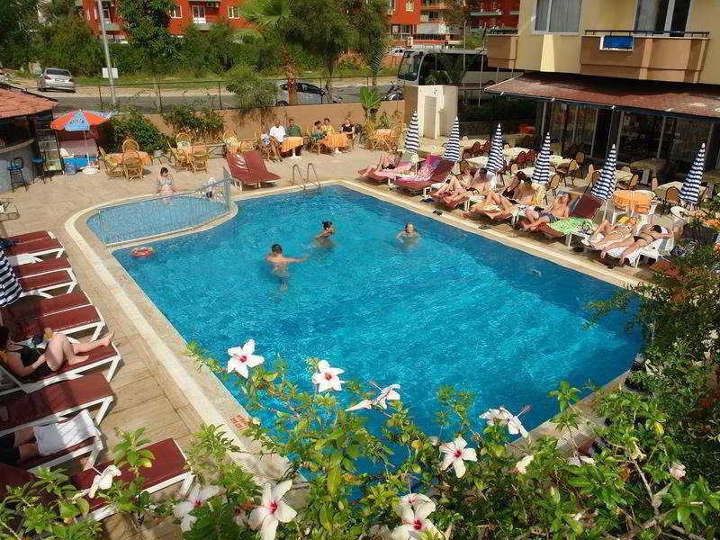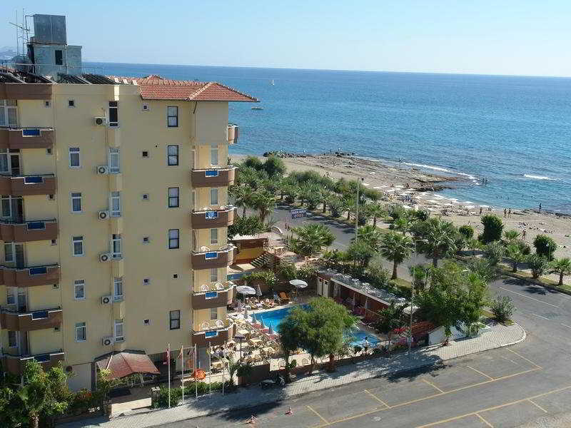 El hotel, situado a 4 km al este del complejo de Alanya, está situado frente a la playa, separado de esta por carretera. Hay paradas de transporte público frente al hotel, con fácil acceso al centro del complejo y a sus comodidades y atracciones turísticas. A unos 500 m se encuentran restaurantes y tiendas, mientras que a unos 4 km hay varios bares, pubs y lugares para salir por la noche. El aeropuerto de Antalya está a unos 135 km del hotel.Este hotel de playa de 40 habitaciones, recientemente remodelado, ofrece alojamientos confortables cerca de la playa. Además de zona de vestíbulo con recepción y servicio de salida 24 horas, las instalaciones a disposición de los huéspedes en este establecimiento climatizado incluyen caja fuerte, servicio de cambio de divisas y ascensor, así como bar, sala de TV y restaurante. Por un suplemento, los huéspedes pueden hacer uso de la conexión a Internet WiFi, así como de los servicios de habitaciones y de lavandería. También se ofrece servicio de alquiler de bicicletas (de pago).Las habitaciones están amuebladas de forma sencilla y vienen con TV vía satélite, aire acondicionado y secador de pelo. Además de cuarto de baño privado con ducha y bañera, otras comodidades incluidas son teléfono de línea directa, cama doble y balcón/terraza.El hotel cuenta con una piscina al aire libre con zona de baño infantil y chiringuito. Hay tumbonas y sombrillas disponibles a la orilla del agua. También hay baño turco o hamam con masajes (por un cargo extra). Además, los huéspedes pueden jugar una partida de ping-pong. Se ofrecen actividades de entretenimiento para adultos.Se sirven todas las comidas en forma de bufet abierto con bebidas alcohólicas incluidas. También se pueden reservar paquetes de 'todo incluido'.