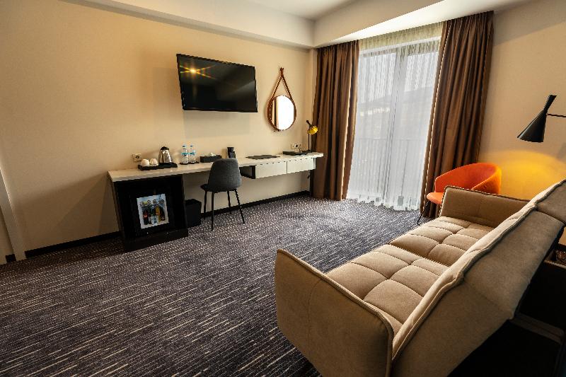 Alojamiento confortable: Sevsamora Resort & Spa en Saguramo ofrece habitaciones familiares con balcón, vistas a la montaña y comodidades modernas. Cada habitación incluye aire acondicionado, baño privado y wifi gratis. Bienestar y ocio: Los huéspedes pueden disfrutar de las instalaciones de spa, una piscina con vistas, sauna, gimnasio, solárium y bicicletas gratuitas. Entre las comodidades adicionales se incluyen bañera de hidromasaje, piscina cubierta y servicio de masajes. Experiencia gastronómica: El restaurante, ideal para familias, sirve desayunos continentales y tipo buffet con champán, especialidades locales, platos calientes y bollería recién hecha. Ubicación y atracciones: Ubicado a 43 km del Aeropuerto Internacional de Tbilisi, el complejo se encuentra cerca de atracciones como el Teatro de Ópera y Ballet de Tbilisi (a 28 km) y la estación de metro Medical University (a 25 km). Los huéspedes aprecian la atención del personal y el excelente servicio.