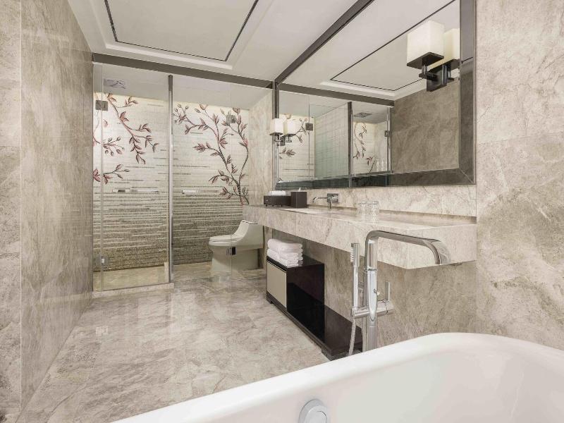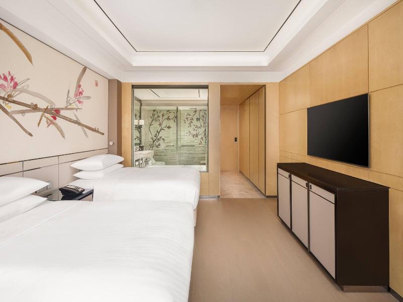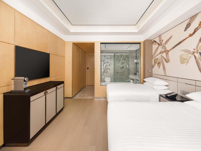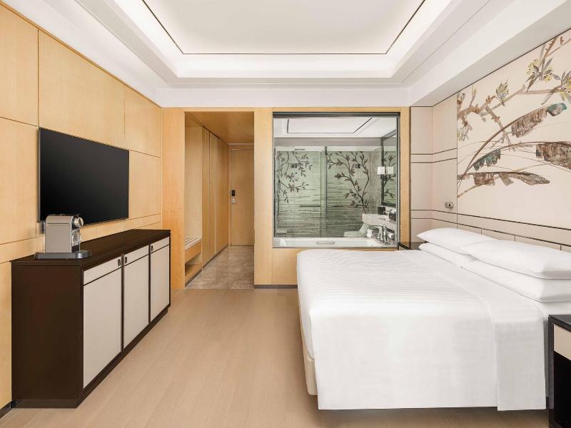 Si decides alojarte en Shanghai Marriott Hotel Parkview, disfrutarás de una céntrica ubicación en Shanghái, y apenas te separarán 10 minutos en coche de Distrito comercial de Nanjing Road y Plaza del Pueblo. Además, este hotel de lujo se encuentra a 8, 5 km de Templo de Jing'an y a 9, 6 km de Torre de la Perla Oriental. . Disfruta de tus momentos de ocio con instalaciones como una piscina cubierta, una pista de tenis al aire libre y un gimnasio. Encontrarás además conexión a Internet wifi gratis, servicios de conserjería y una tienda de recuerdos. . Te sentirás como en tu propia casa en cualquiera de las 317 habitaciones con aire acondicionado, frigorífico y estación de conexión para iPod. Las camas cuentan con colchones con una capa de acolchado adicional y sábanas italianas Frette para descansar plácidamente. Para los momentos de ocio, tendrás una televisión LCD de 46 pulgadas con canales por satélite y conexión a Internet por cable y wifi gratis. El baño privado con bañera y ducha independientes está provisto de artículos de higiene personal gratuitos y bidés. . Si tienes ganas de comer algo de cocina china, ve a Man Ho, uno de los 4 restaurantes de este hotel, o simplemente llama al servicio de habitaciones las 24 horas. Qué mejor forma de acabar el día que con una bebida en el bar o lounge. Se ofrece un desayuno bufé todos los días de 06:00 a 10:30 con un coste adicional. . Tendrás un centro de negocios, periódicos gratuitos en el vestíbulo y tintorería a tu disposición. ¿Estás organizando un evento en Shanghái? En este hotel tienes a tu disposición 2713 metros cuadrados de espacio con zona para conferencias y salas de reuniones. Pagando un pequeño suplemento podrás aprovechar prestaciones como servicio de transporte al aeropuerto (ida y vuelta) disponible 24 horas y aparcamiento sin asistencia gratuito. . Las distancias se expresan en números redondos.