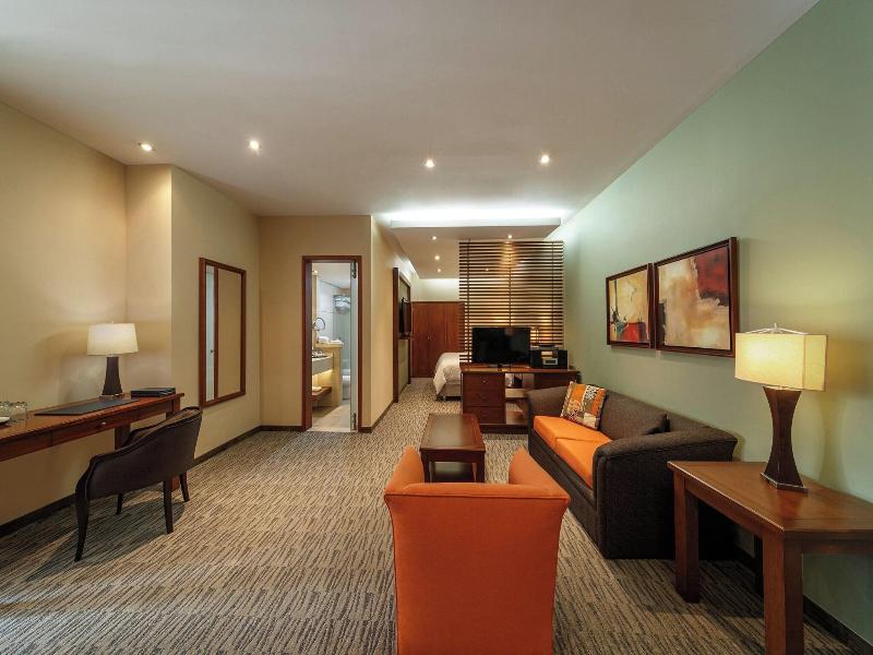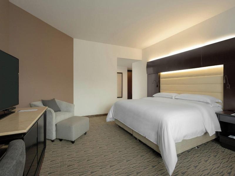 Alójate en el Sheraton Bogota Hotel en Bogotá (Fontibón) y estarás a 5 minutos en coche de Salitre Plaza Centro Comercial y Centro Comercial Gran Estación. Este hotel de lujo está a 4 km de la Embajada de Estados Unidos en Bogotá y a 11, 1 km del Parque de la 93. Relájate en el spa completo, donde puedes disfrutar de masajes. Apreciarás las instalaciones recreativas, que incluyen una piscina cubierta, un sauna y un gimnasio. Otros servicios de este hotel incluyen acceso inalámbrico a internet de cortesía, servicios de conserjería y tiendas de regalos/quioscos. Siéntete como en casa en una de las 247 habitaciones con frigorífico y minibar. El acceso a internet por cable e inalámbrico es gratuito, y los televisores LCD con canales por cable te ofrecen entretenimiento. Los baños privados con ducha y bañera combinadas están equipados con artículos de tocador gratuitos y secadores de pelo. Las comodidades incluyen teléfono, caja fuerte (para laptops) y escritorio. Disfruta de la cocina internacional en Cooks Restaurant, uno de los 3 restaurantes del hotel, o quédate en tu habitación y aprovecha el servicio a la habitación las 24 horas. También hay snacks disponibles en la cafetería. Termina tu día con una bebida en el bar/lounge. Se sirve un desayuno bufé gratuito todos los días de 6:00 a 10:30. Los servicios destacados incluyen un centro de negocios, periódicos gratuitos en el vestíbulo y servicio de tintorería/lavandería.