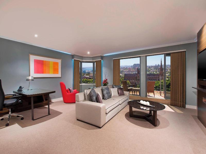 Disfruta de relajantes masajes, tratamientos corporales y faciales en este hotel de Sídney. Los huéspedes pueden disfrutar de un gimnasio abierto las 24 horas, una piscina cubierta y un sauna. Entre las comodidades adicionales se incluyen wifi gratis, servicios de conserjería y una peluquería. Come en uno de los dos restaurantes del hotel, pide servicio a la habitación (con horario limitado) o toma un refrigerio en la cafetería. Relájate con una bebida en el bar/salón. Se sirve desayuno buffet todos los días (de pago). Para los viajeros de negocios, se ofrece un centro de negocios abierto las 24 horas, servicio de limusina/coche urbano y check-in exprés. El hotel ofrece 650 metros cuadrados de espacio para eventos, incluyendo espacio para conferencias y 17 salas de reuniones. Hay aparcamiento disponible (de pago). Las 558 habitaciones con aire acondicionado disponen de estaciones de conexión para iPod, minibar, conexión a internet por cable e inalámbrica gratuita y televisores LCD de 55 pulgadas con canales por cable. Los baños privados incluyen bañera y ducha separadas, artículos de tocador gratuitos y secador de pelo. También incluyen teléfono, caja fuerte con capacidad para ordenador portátil y escritorio. El hotel está convenientemente ubicado cerca de Hyde Park, Westfield Shopping Centre y Sydney Tower Eye.