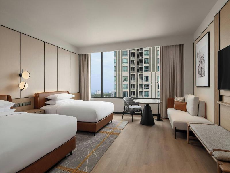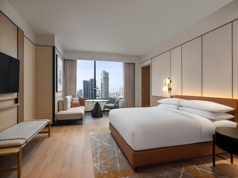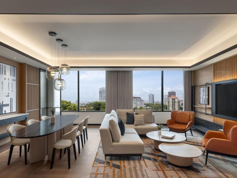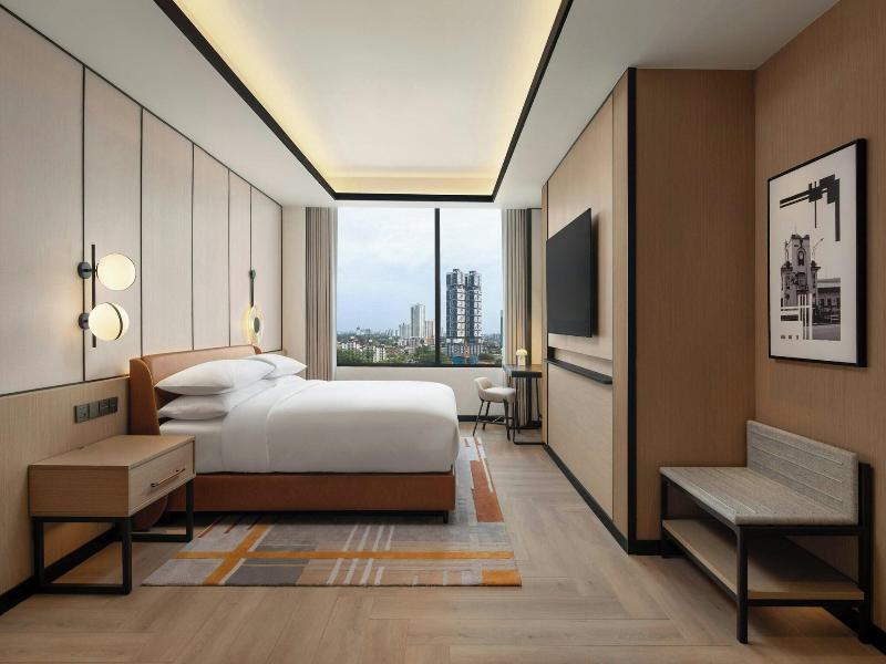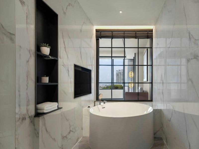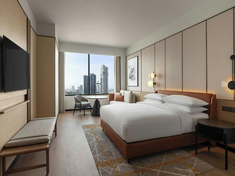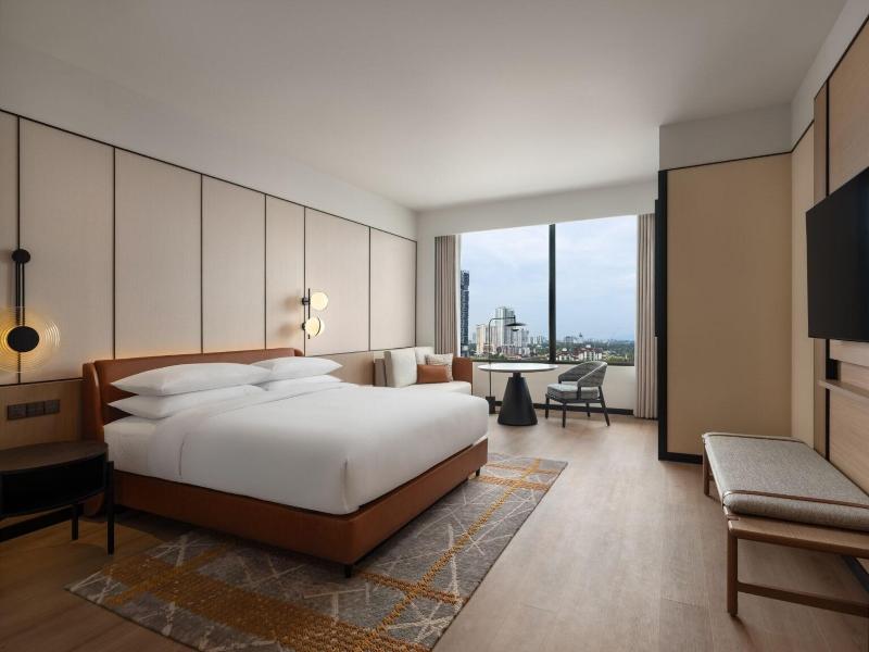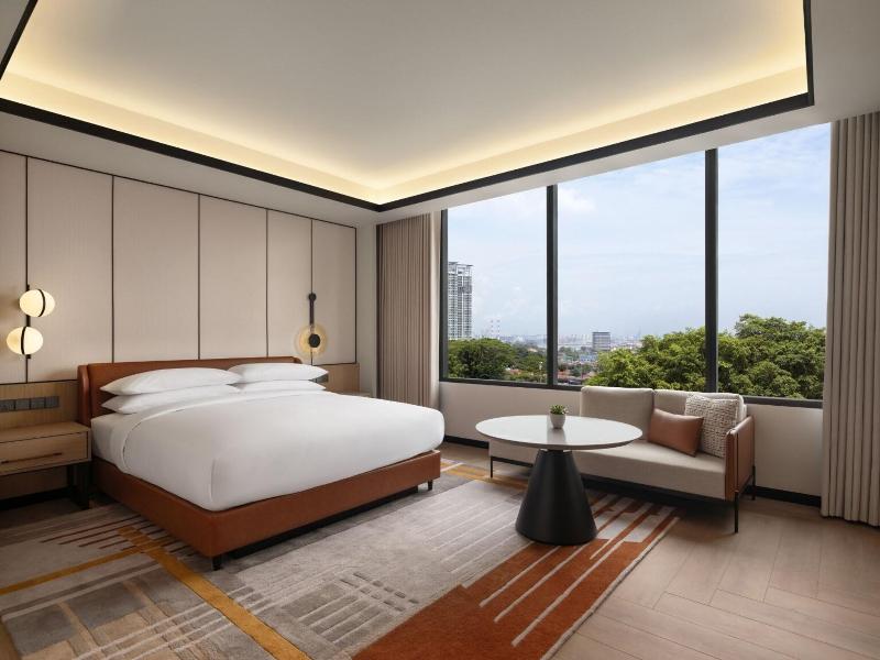 Ubicado en la calle Jalan Storey en Johor Bahru, el hotel de 5 estrellas Sheraton Johor Bahru ofrece un alojamiento de estilo contemporáneo con vistas del horizonte de la ciudad. El hotel cuenta con dos piscinas al aire libre, entre las que se incluye una piscina para niños con un tobogán acuático, además de un centro de fitness que está abierto las 24 horas y un baño de vapor para la relajación. Se dispone de aparcamiento en las instalaciones y de estaciones de carga para vehículos eléctricos. Las opciones gastronómicas incluyen el restaurante «Daily Social», que sirve cocina internacional y local durante todo el día; «&More by Sheraton», para disfrutar de un café y aperitivos ligeros; y «Soo Noodles», que se especializa en platos de fideos asiáticos. El hotel también dispone de un bar junto a la piscina y un bar de estilo clandestino llamado «Unspoken Bar», ideal para cócteles y bocados ligeros. Las 345 habitaciones y suites están equipadas con aire acondicionado, wifi gratuito, televisores inteligentes de 55 pulgadas e instalaciones para preparar té y café. Los cuartos de baño son privados e incluyen una ducha y artículos de aseo gratuitos. Ciertas habitaciones, como la Family Room, presentan comodidades específicas como literas, y al elegir una habitación o suite de nivel Club se obtiene acceso al Club Lounge. El hotel se encuentra situado a 15 minutos a pie del centro comercial Komtar JBCC y del Complejo de Aduanas, Inmigración y Cuarentena de Johor Bahru. El zoológico de Johor está a 3, 7 km de distancia.