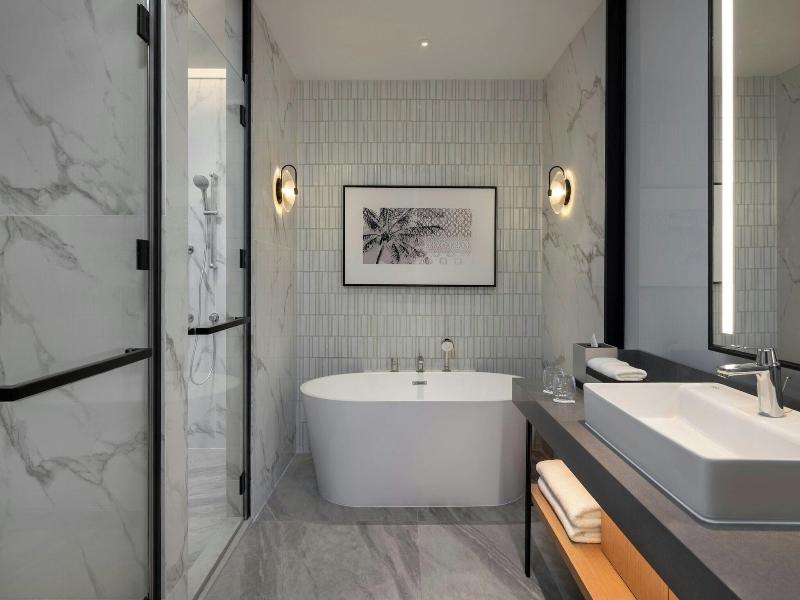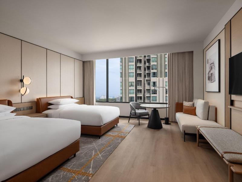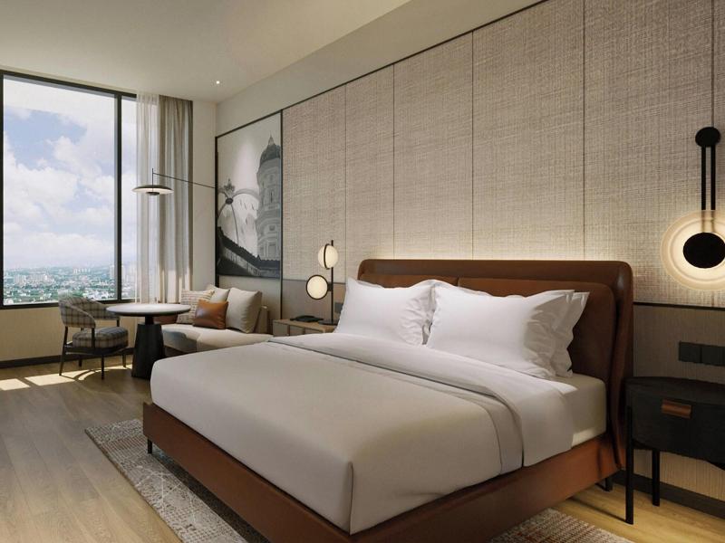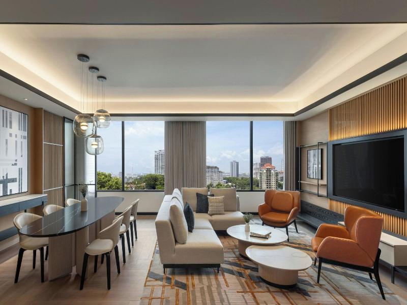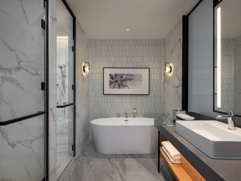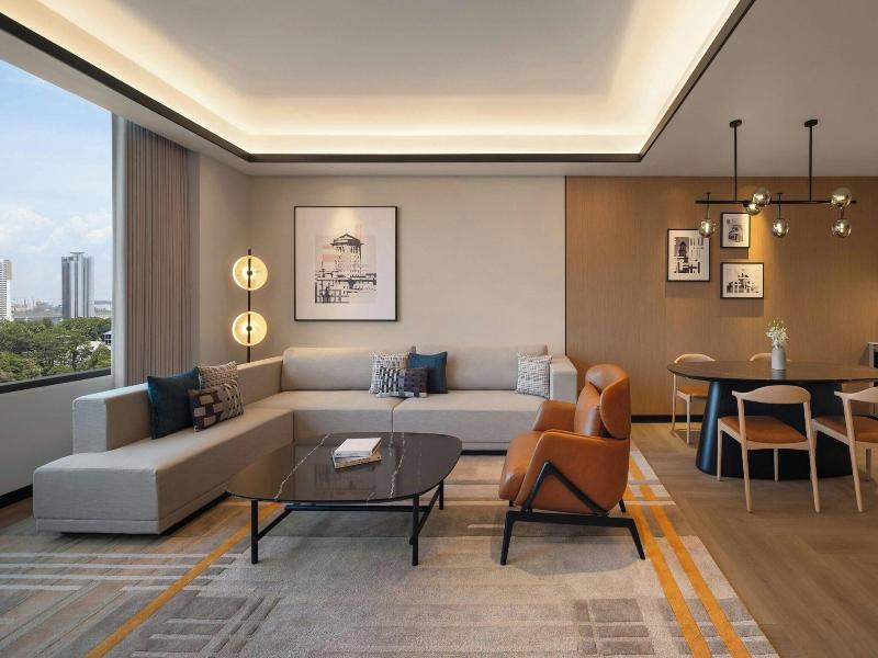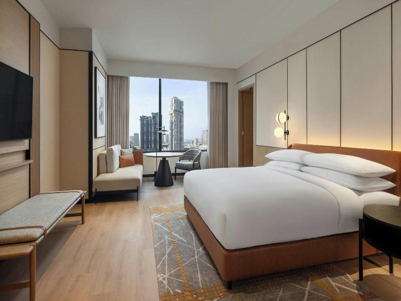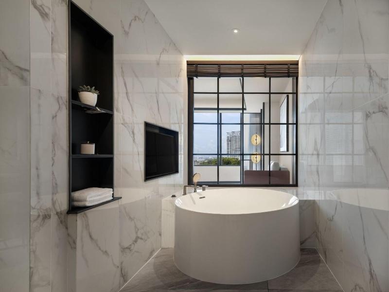 Ubicado en la calle Jalan Storey en Johor Bahru, el hotel de 5 estrellas Sheraton Johor Bahru ofrece un alojamiento de estilo contemporáneo con vistas del horizonte de la ciudad. El hotel cuenta con dos piscinas al aire libre, entre las que se incluye una piscina para niños con un tobogán acuático, además de un centro de fitness que está abierto las 24 horas y un baño de vapor para la relajación. Se dispone de aparcamiento en las instalaciones y de estaciones de carga para vehículos eléctricos. Las opciones gastronómicas incluyen el restaurante «Daily Social», que sirve cocina internacional y local durante todo el día; «&More by Sheraton», para disfrutar de un café y aperitivos ligeros; y «Soo Noodles», que se especializa en platos de fideos asiáticos. El hotel también dispone de un bar junto a la piscina y un bar de estilo clandestino llamado «Unspoken Bar», ideal para cócteles y bocados ligeros. Las 345 habitaciones y suites están equipadas con aire acondicionado, wifi gratuito, televisores inteligentes de 55 pulgadas e instalaciones para preparar té y café. Los cuartos de baño son privados e incluyen una ducha y artículos de aseo gratuitos. Ciertas habitaciones, como la Family Room, presentan comodidades específicas como literas, y al elegir una habitación o suite de nivel Club se obtiene acceso al Club Lounge. El hotel se encuentra situado a 15 minutos a pie del centro comercial Komtar JBCC y del Complejo de Aduanas, Inmigración y Cuarentena de Johor Bahru. El zoológico de Johor está a 3, 7 km de distancia.