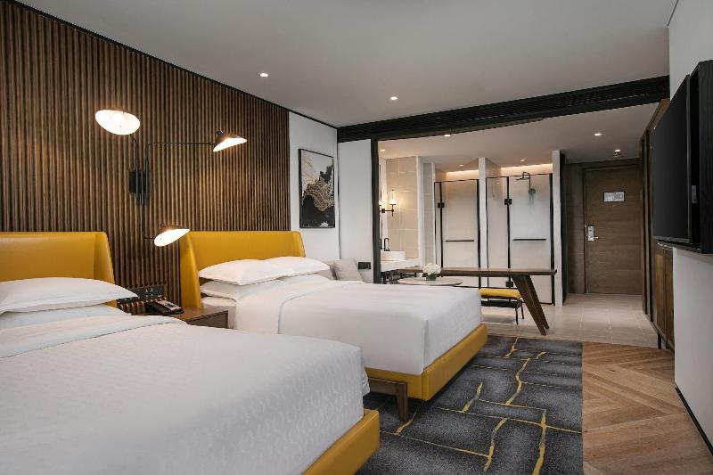 El Sheraton Nanjing Kingsley Hotel & Towers te sitúa en el corazón de Nankín, a poca distancia en coche de la Nanjing Normal University y del Qingliangshan Park. Este hotel de lujo está convenientemente ubicado cerca del Chaotian Palace y de la Hohai University. Disfruta de instalaciones recreativas que incluyen una discoteca, un gimnasio y una piscina cubierta. El hotel también ofrece wifi gratis, servicios de conserjería y una sala de juegos recreativos. Relájate en una de las 350 habitaciones con aire acondicionado, equipadas con minibar y televisor LCD. Tu cama cuenta con edredones de plumas y ropa de cama de primera calidad, mientras que el acceso a internet por cable e inalámbrico gratuito te mantiene conectado. Los baños privados incluyen bañera y ducha separadas con bañeras profundas y cabezales de ducha tipo lluvia. Elige entre tres restaurantes en el hotel, incluido el Aromas Coffee Shop, o disfruta del servicio de habitaciones las 24 horas. También hay snacks disponibles en la cafetería. Relájate con una bebida en uno de los cuatro bares. Se sirve desayuno bufé con cargo adicional. Entre los servicios adicionales se incluyen acceso a internet por cable gratuito, un centro de negocios y check-in exprés. Hay aparcamiento disponible (de pago).