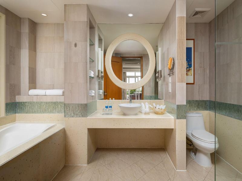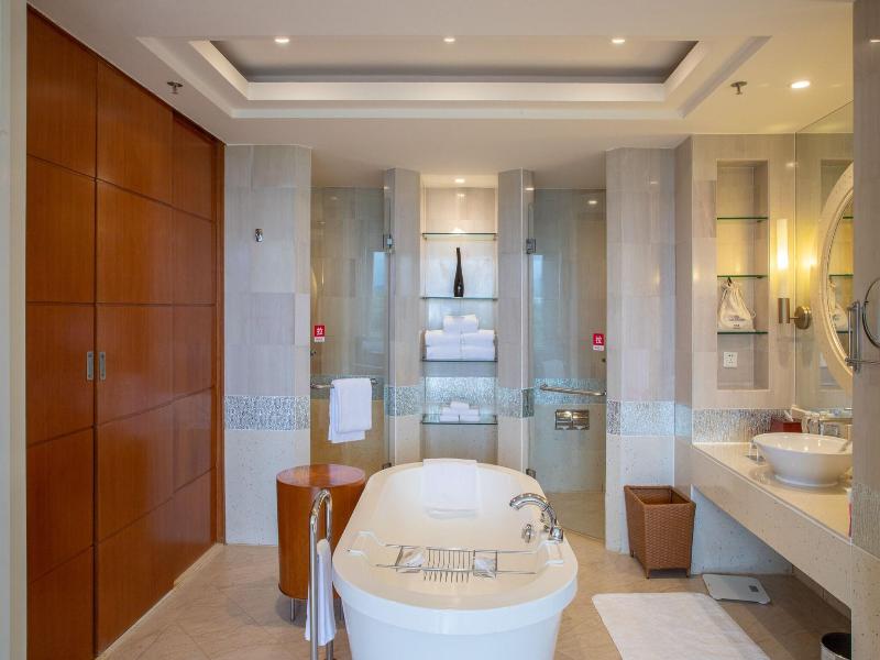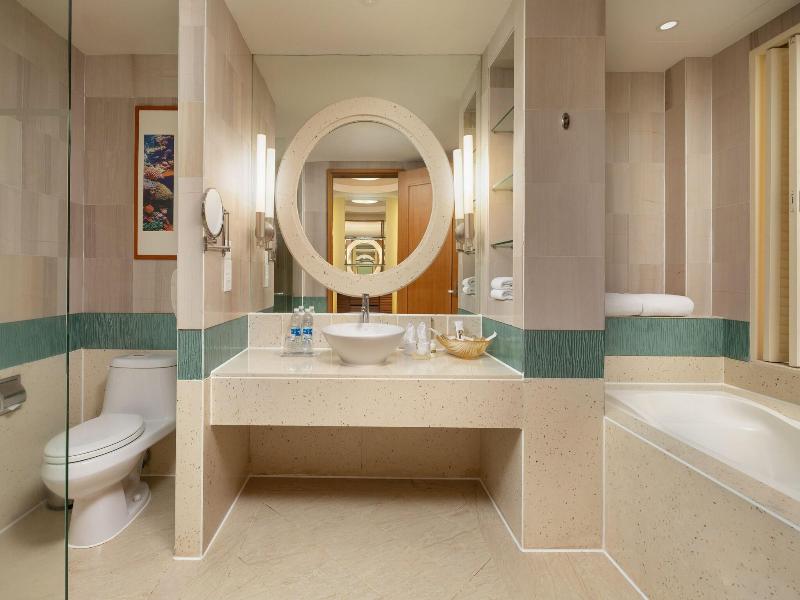 Ubicado en Sanya, el Sheraton Sanya Resort se encuentra a 5, 6 km del Parque Forestal Tropical de la Bahía de Yalong y a 12, 2 km de Sun Bay. Este resort de lujo ofrece cinco piscinas al aire libre, un parque acuático gratuito y una discoteca. Los huéspedes pueden disfrutar de wifi gratis, servicios de conserjería y una sala de juegos recreativos. Hay un servicio de traslado a la playa disponible (con cargo). Las 511 habitaciones cuentan con minibar, televisores LCD, reproductores de DVD y canales de televisión premium. Los baños privados incluyen bañera y ducha separadas con cabezales de ducha tipo lluvia. Las opciones gastronómicas incluyen cinco restaurantes, entre ellos el Lotus Cafe, de cocina internacional, y servicio de habitaciones las 24 horas. Una cafetería y un bar ofrecen aperitivos y bebidas. Se sirve desayuno completo por un suplemento. Los servicios adicionales incluyen internet por cable gratuito, un centro de negocios y check-out exprés.