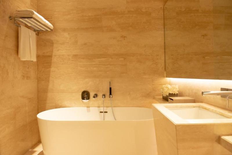 Un distintivo hotel boutique de poca altura con un estilo arquitectónico minimalista, revestido con una fachada de piedra arenisca que refleja la cultura saudí. Los edificios se han orientado de manera que crean amplios espacios abiertos, incluyendo una calle interior y una plaza central que se integra armoniosamente con el vestíbulo del hotel. La propiedad ofrece un acogedor ambiente social y gastronómico y una experiencia que se adapta a las preferencias y estados de ánimo individuales. El diseño atemporal refleja los sabores de Arabia. Aquí, lienzos en tonos marrones y verde musgo, junto con muebles a medida, artesanía intrincada, arte local y patrones de mashrabiya, crean espacios acogedores e íntimos y una atmósfera elegante. La terraza sombreada de la azotea enmarca la ciudad costera y ofrece la oportunidad de refrescarse en la piscina.