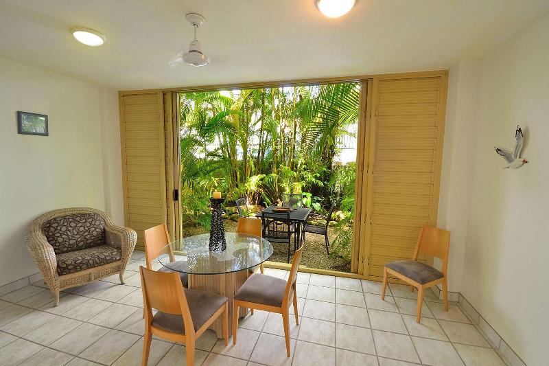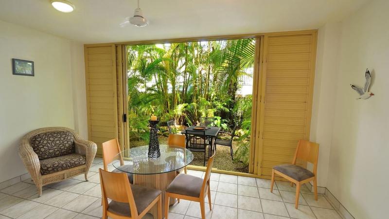 Ubicado en la calle Macrossan de Port Douglas, Silkari Reflections of Port Douglas se encuentra en la zona tranquila de la ciudad y se recomienda para mayores de 15 años. A solo pasos de Four Mile Beach, también está a un corto paseo de restaurantes, bares, tiendas y mucho más. Silkari Reflections of Port Douglas se encuentra entre los mejores y más asequibles hoteles de Port Douglas, con una gama de espaciosos apartamentos vacacionales independientes de una, dos y tres habitaciones en el corazón de Port Douglas, completamente equipados con amplias cocinas, lavandería, aire acondicionado y ventiladores de techo. Además, tendrás acceso a nuestra piscina de agua salada de 15 metros, instalaciones de barbacoa en medio de exuberantes jardines tropicales, wifi gratuito y aparcamiento subterráneo gratuito. Ven de vacaciones con nosotros y disfruta al máximo todo lo que el norte tropical de Queensland tiene para ofrecer.