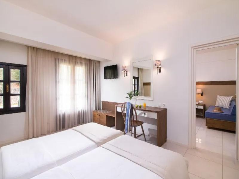 Rodeado de aguas cristalinas, pinares, pueblos pintorescos y yacimientos arqueológicos, este hotel es un destino vacacional perfecto para familias que buscan relajarse. Ubicado en las playas de arena de la península de Calcídica, ofrece una gran variedad de habitaciones, todas a menos de 100 metros del mar. Todas están bellamente decoradas con un estilo que recuerda al monástico, pero realzado con una amplia gama de comodidades modernas. Los huéspedes pueden pasar sus días relajándose en las dos piscinas exteriores o disfrutando de las cálidas aguas del Egeo. Pueden tomar cócteles en el encantador chiringuito de playa, que también ofrece el lugar perfecto para ver la puesta de sol. Los más pequeños pueden desahogarse en el parque infantil o en el club infantil, mientras sus padres se relajan con un masaje o juegan un partido amistoso en la pista de tenis.