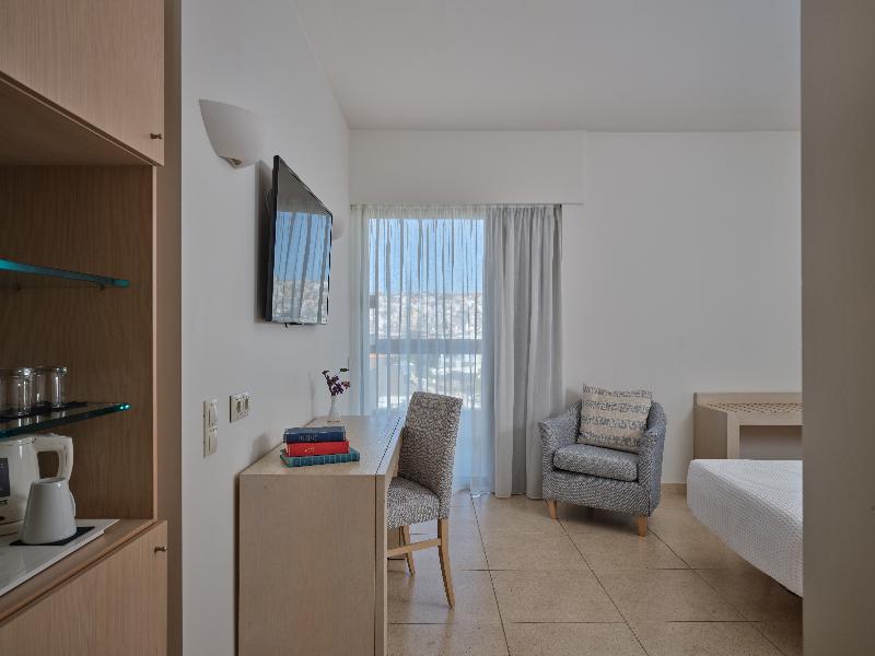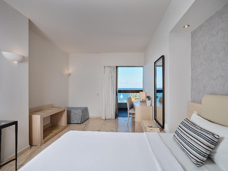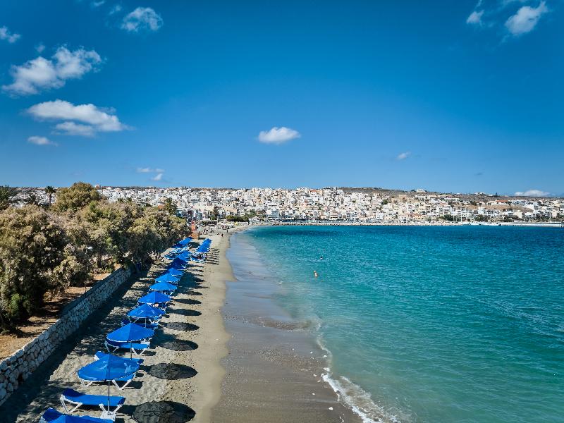 El hotel está situado en la playa de arena de la bahía de Sitia, a solo 5 minutos a pie del centro de la ciudad, el puerto deportivo, las tiendas y las tabernas. La estación de autobuses está a unos 300 m. También se encuentra a solo 1, 5 km del aeropuerto de Sitia y a 120 km del aeropuerto de Heraclión 'Nikos Kazantzakis'. El hotel cuenta con 161 habitaciones, 2 salas de conferencias con instalaciones, un bar, una cafetería y un restaurante. Este establecimiento con aire acondicionado dispone de un vestíbulo con recepción 24 horas y servicio de salida. Otras instalaciones que se ofrecen a los huéspedes incluyen caja fuerte, servicio de cambio de divisas, ascensor, sala de juegos y sala de televisión. Además, se proporciona acceso a Internet y servicio de habitaciones y de lavandería por un suplemento. Quienes lleguen en coche pueden dejar su vehículo en el aparcamiento. Las habitaciones del hotel están completamente renovadas con un estilo moderno. Cuentan con minibar/nevera, aire acondicionado y calefacción regulables individualmente las 24 horas, caja fuerte, TV por cable/satélite, teléfono de línea directa y acceso a Internet. Los baños privados están equipados con ducha o bañera y las habitaciones con camas dobles o individuales. Los huéspedes pueden disfrutar de su propio balcón. Hay 3 piscinas al aire libre, una piscina infantil y un bar junto a la piscina. Los huéspedes pueden utilizar las tumbonas y sombrillas en la terraza o en la playa. Hay gimnasio, masajes y tratamientos de spa disponibles por un suplemento. Los huéspedes pueden disfrutar jugando al tenis, al ping-pong, al billar/snooker (de pago), al baloncesto, al voleibol y a la petanca. En la playa cercana, encontrarán tumbonas y sombrillas.