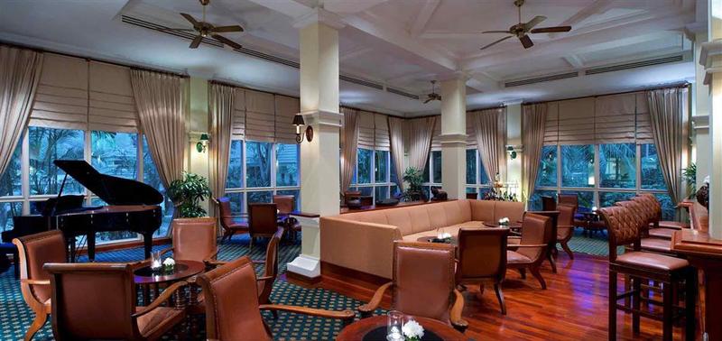 Este hotel urbano, climatizado y rodeado de un jardín de vegetación tropical y de palmeras, combina una preciosa arquitectura francesa y de la época de Khmer. Tiene tres plantas en las que se reparten un total de 238 habitaciones, 24 de ellas suites. En el imponente hall de entrada hay un área de recepción abierta las 24 horas del día, donde se le ofrece servicio de cambio de divisa y de caja fuerte. También tendrá a su disposición un ascensor, una cafetería y algunas tiendas. Entre otras instalaciones, cuenta con un bar, una discoteca y cinco restaurantes a la carta climatizados, con zona para no fumadores y sillas altas para los niños. Podrá encontrar en el edificio dos salas de conferencias, una terminal con conexión a Internet y una zona de acceso inalámbrico a Internet. Como prestaciones adicionales se le ofrecen los servicios de habitaciones, de lavandería, de alquiler de bicicletas y de atención médica. Podrá aparcar su vehículo en el aparcamiento del hotel.