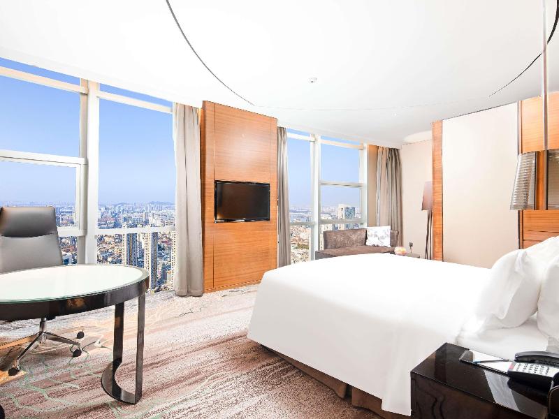 El Sofitel Nanjing Galaxy, un lujoso hotel francés del grupo Accor, se encuentra en el corazón del centro comercial, financiero y administrativo de Nanjing, en Hunan Road. Este elegante hotel ofrece 352 sofisticadas habitaciones y suites, muchas de ellas con impresionantes vistas a Purple Mountain, Xuanwu Lake y el paisaje nocturno de Nanjing. Los huéspedes pueden disfrutar de una variedad de opciones gastronómicas, que incluyen buffets internacionales y exquisita cocina china en los dos restaurantes del hotel. Le Bar Lounge ofrece un ambiente moderno para disfrutar de cócteles, postres y el té de la tarde. Para la recreación, el hotel dispone de un gimnasio con aparatos de cardio y musculación, una piscina cubierta climatizada y una pista de tenis al aire libre.