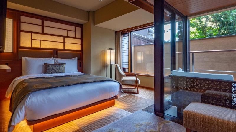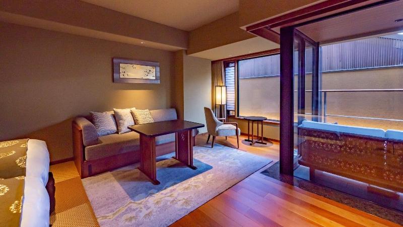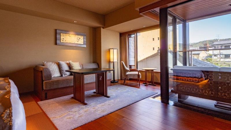 Disfruta de una lujosa estancia en Soraniwa Terrace Kyoto Bettei, ubicado en el barrio de Shimogyo en Kioto, a pocos pasos de la calle Kawaramachi y a un corto paseo del mercado Nishiki. Este hotel ofrece 32 habitaciones con bañeras de hidromasaje privadas al aire libre, suelos con calefacción, camas con pillow-top y edredones de plumas, y televisores LCD de 55 pulgadas con Netflix. También se proporciona wifi gratuito, cajas fuertes y hervidores eléctricos, además de servicio de limpieza diario. Hay una máquina expendedora de aperitivos y bebidas. Comienza tu día con un desayuno japonés, servido a diario (de pago). El hotel ofrece servicios prácticos como recepción 24 horas y ascensor. Entre las atracciones cercanas se incluyen el Palacio Imperial de Kioto y el templo Kiyomizu.