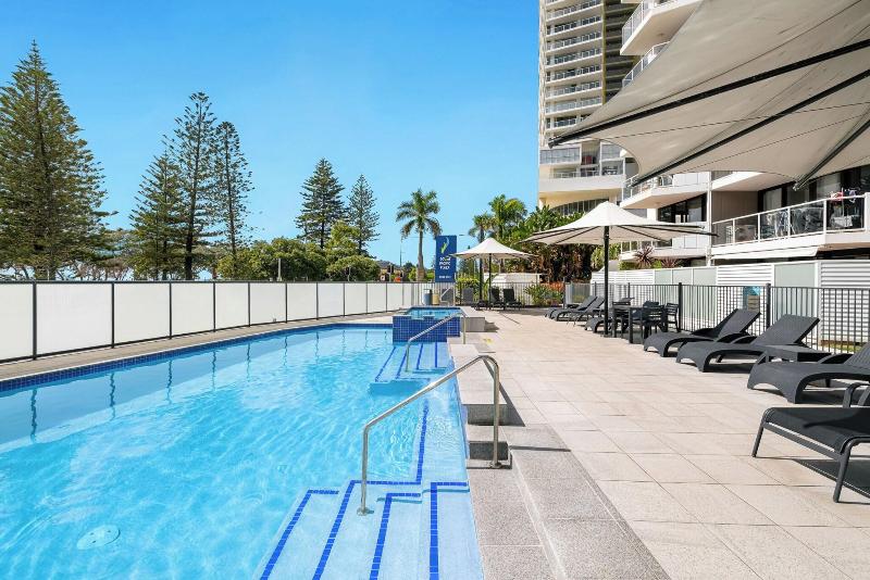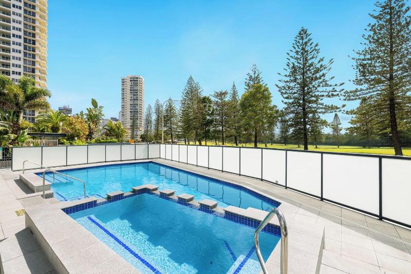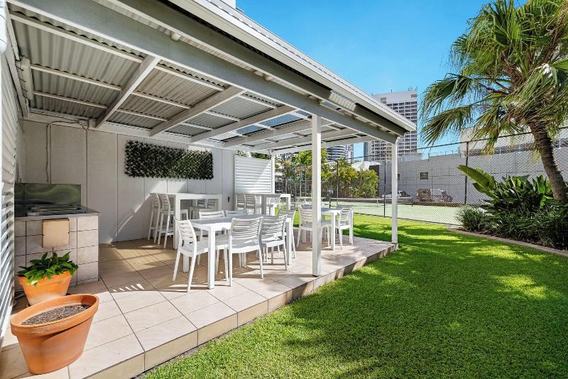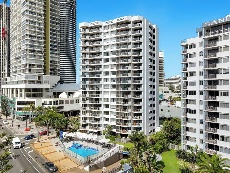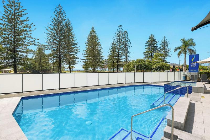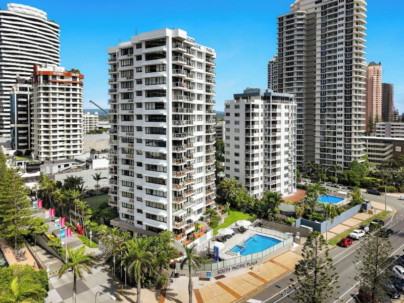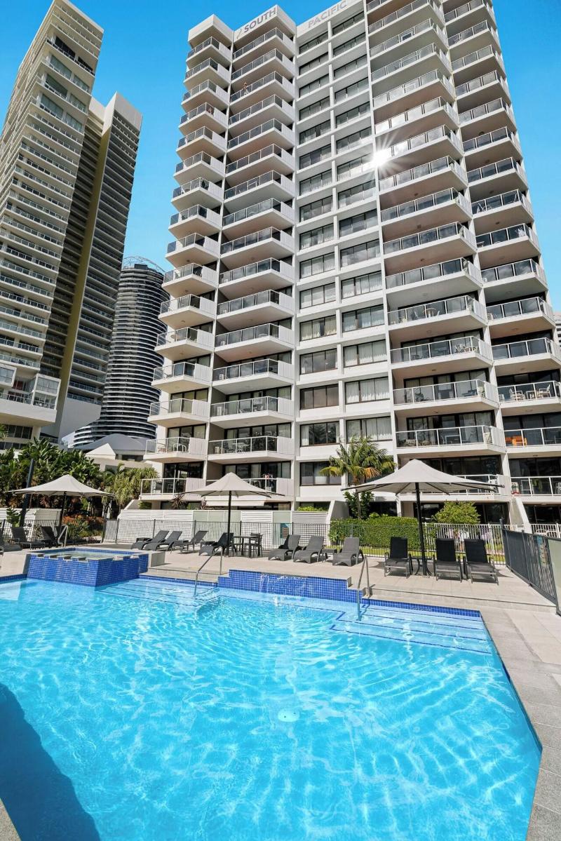 El South Pacific Plaza es un resort de 4 estrellas idealmente ubicado en Broadbeach, a pocos pasos del Broadbeach Mall y la famosa Kurrawa Surfing Beach. Tiendas, restaurantes y el monorraíl al Jupiters Casino & Convention Centre también se encuentran a poca distancia. Este resort ofrece apartamentos de uno y dos dormitorios, cada uno con un balcón privado con vistas al océano desde el 5º piso o vistas al interior/jardines. Cada unidad totalmente independiente incluye una cocina completa, sala de estar/comedor independiente, amplios dormitorios, un baño separado y lavandería, lo que garantiza unas vacaciones cómodas. Las comodidades incluyen una piscina climatizada al aire libre, spa, cancha de tenis de tamaño completo, sauna, zona de barbacoa y aparcamiento subterráneo gratuito. Todas las unidades están completamente amuebladas y equipadas con televisión (de pago), microondas, cocina completa/placas de cocción y un refrigerador grande. Algunas unidades también ofrecen aire acondicionado, ventiladores de techo, bañeras y/o reproductores de DVD. Se requiere una preautorización de tarjeta de crédito o un depósito en efectivo de 200 $ a la llegada.