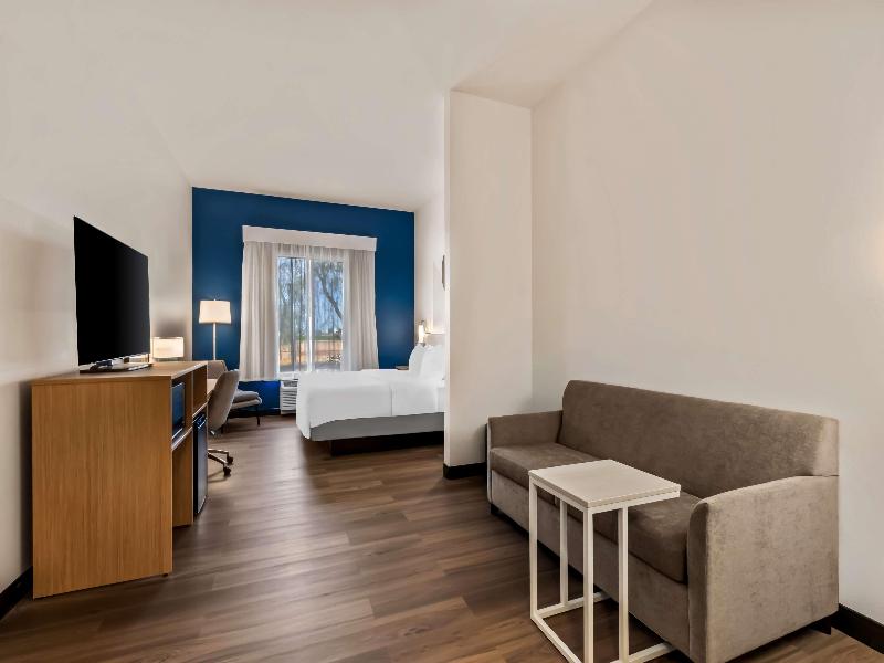 Escápate al Best Western Legacy Inn & Suites y disfruta de un alojamiento tranquilo en nuestro hotel de Mesa, AZ. Tranquilamente ubicado a solo minutos del Aeropuerto Phoenix-Mesa Gateway en la frontera de Mesa/Gilbert, cerca de las principales ciudades del Valle de Phoenix con fácil acceso a la Loop 202 y la US-60. Te sentirás como en casa con nuestra rica decoración, hermosos jardines, personal cálido y acogedor, habitaciones amplias y decoradas con buen gusto y generosas comodidades que incluyen internet inalámbrico de alta velocidad, microondas, refrigerador, cafetera, cable premium con HBO®, CNN ¡y mucho más! Despierta cada mañana con un desayuno buffet caliente completo de cortesía para comenzar bien el día. Después del desayuno, sal al hermoso sol de Arizona y explora las atracciones turísticas cercanas mientras disfrutas de las muchas opciones de restaurantes, tiendas y lugares de interés excepcionales en la zona. ¿Vienes por un evento deportivo? Mesa es la sede de los entrenamientos de primavera de los Chicago Cubs® y los Oakland A®'s, ambos estadios ubicados a poca distancia en auto. También somos el hotel más cercano a las instalaciones deportivas Big League Dreams, que alberga varios eventos cada año. Si viajas con un grupo grande, con gusto aceptamos reservas de grupo, lo que lo convierte en el lugar perfecto para que los equipos se alojen mientras están en la zona. ¿Viajas por negocios? ¡El Best Western Legacy Inn & Suites está a solo minutos de muchos lugares como el ASU® Polytechnic Campus, Gilbert Hospital, Cessna, Gateway Aviation, TRW y más! Transporte gratuito al aeropuerto y al área disponible todos los días, lo que hace que viajar sea fácil y sin estrés.