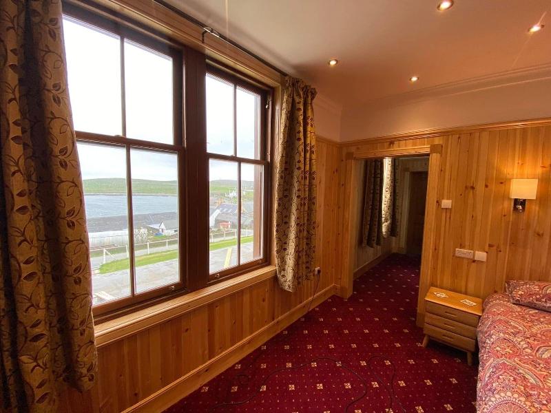 Ubicado en el escarpado paisaje de Hillswick, en las Islas Shetland, este hotel familiar ofrece vistas a la bahía de St Magnus. El establecimiento, un edificio histórico revestido de madera, proporciona un alojamiento con carácter para explorar la zona. Los huéspedes pueden disfrutar de una comida en el restaurante del hotel, que sirve cocina británica, escocesa y mariscos, con opciones vegetarianas y veganas disponibles. El hotel cuenta con un bar y salón, un jardín y una terraza. Para comenzar el día se ofrece un desayuno completo. Los servicios clave incluyen wifi gratuito y aparcamiento gratuito en las instalaciones. Las habitaciones están equipadas con baño privado, televisión y menaje para preparar té y café. Algunas habitaciones tienen vistas al mar, lo que ofrece la oportunidad de observar la fauna local directamente desde la ventana. El hotel se encuentra a 1, 3 km del centro de Hillswick.