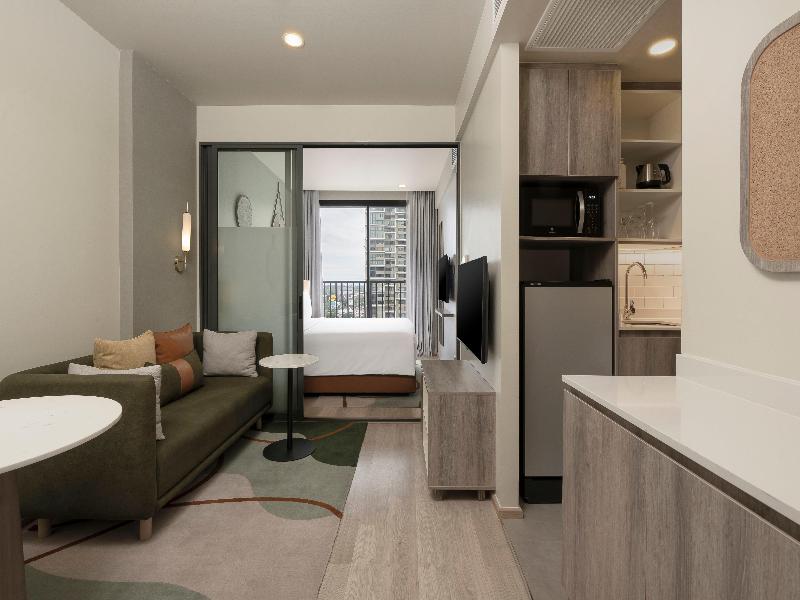 Disfruta de un verdadero hogar lejos de casa en el nuevo Staybridge Suites Bangkok Sukhumvit, convenientemente ubicado en Sukhumvit 24, cerca de la estación BTS de Phrom Phong. Rodeado de destinos populares como EmQuartier, Emporium, Samitivej Hospital y Asoke, nuestro hotel de suites ofrece espaciosas habitaciones con cocina americana completa, espacio de trabajo y sala de estar, perfectas para relajarse y recargar energías. Comienza tu día con nuestro desayuno caliente tipo buffet gratuito y relájate en nuestro onsen japonés, sauna y piscina al aire libre. También tienes a tu disposición un espacio de coworking, The Den. Ya sea que viajes por negocios o por placer, Staybridge Suites Bangkok Sukhumvit te ofrece la base perfecta en Bangkok con wifi de alta velocidad gratuito para que te mantengas conectado.