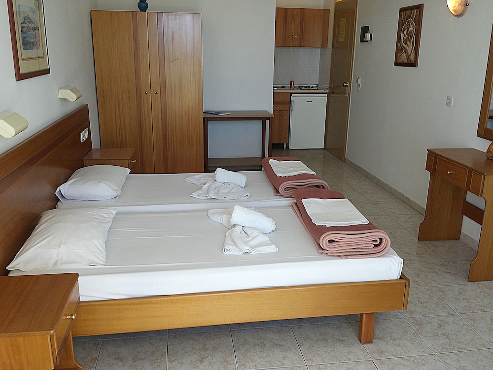 Con una piscina al aire libre y muchas otras instalaciones recreativas a tu disposición, no te quedará ni un minuto libre. Tienes también una terraza y jardín donde sentarte a contemplar el paisaje. En Stella View Studios tienes un restaurante a tu disposición, o la posibilidad de comprar algo de comer en su snack-bar o delicatessen. Qué mejor forma de acabar el día que con una bebida en el bar junto a la piscina. Tendrás una sala de ordenadores y atención multilingüe a tu disposición. Hay un aparcamiento sin asistencia gratuito disponible. Reserva una de las 24 habitaciones climatizadas, todas equipadas con minicocina con frigorífico y placa de cocina. Las habitaciones disponen de balcón. Con televisión LED de 32 pulgadas y conexión a Internet wifi gratis, tienes para elegir a la hora de entretenerte. Entre las comodidades, se incluyen caja fuerte y cafetera y tetera, además de un servicio de limpieza disponible todos los días.