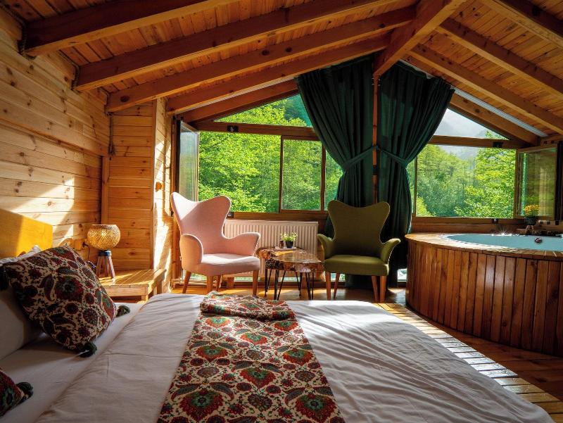 Las Cabañas de Montaña Sumda se encuentran en el distrito Çamlıhemiş de Rize, en el pueblo de Zilkale, en el punto de partida del Arroyo Storm y en una ubicación que abarca la singular mazara del Valle Çat. Nuestro establecimiento también se encuentra a poca distancia de muchas bellezas naturales e históricas. (40 minutos de la Meseta de Ayder, 15 minutos de la Cascada de Palovit, 10 minutos de Zilkale, 40 minutos de la Meseta de Elevit, 45 minutos de las mesetas de Gito y Badara). Contamos con seis chalets y restaurantes, cada uno de los cuales tiene vista al arroyo y al valle, atiende a grupos de familiares o amigos y te ofrece un ambiente acogedor. Nuestro establecimiento lleva sirviendo desde 2018 con el lema de dar la bienvenida a nuestros huéspedes con nuestra hospitalidad, herencia de nuestra geografía, y promocionar nuestra región de la mejor manera.