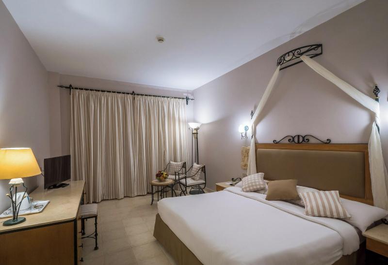 Este vibrante hotel se encuentra a orillas del Mar Rojo, donde podrás disfrutar de las hermosas playas de arena blanca o bucear en la laguna privada del hotel y su arrecife de coral. El hotel está situado a menos de 10 km del aeropuerto internacional de Hurghada y a 3 km del centro de Hurghada, donde puedes explorar y conocer la cultura local. El hotel en sí tiene mucho que ofrecer: piscinas ajardinadas, un gimnasio bien equipado e instalaciones para practicar deportes como vóley-playa, waterpolo, buceo, windsurf y vela. Hay diferentes restaurantes que ofrecen una selección de cocina internacional, así como comida italiana y mariscos. El hotel también cuenta con su propio centro comercial con más de 42 tiendas, además de una peluquería y un cibercafé. Las habitaciones son amplias y todas tienen terraza o balcón privado con vistas al mar, además de aire acondicionado y televisión por satélite.